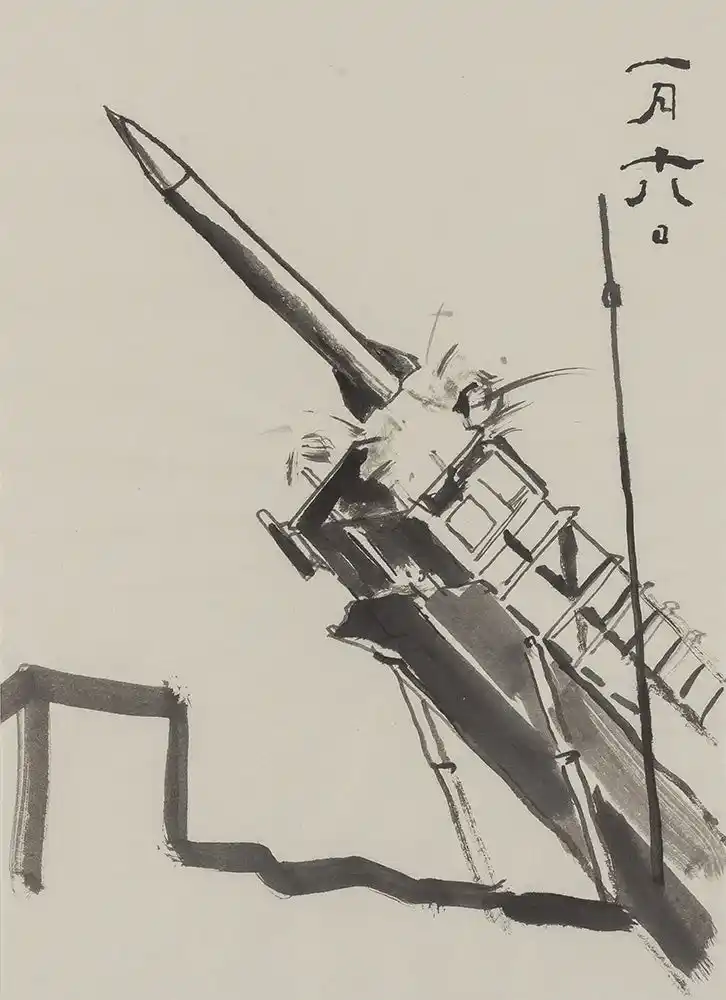 福田美蘭「日新除魔図 一月十八日 パトリオット迎撃ミサイル/実戦初使用日」 |
