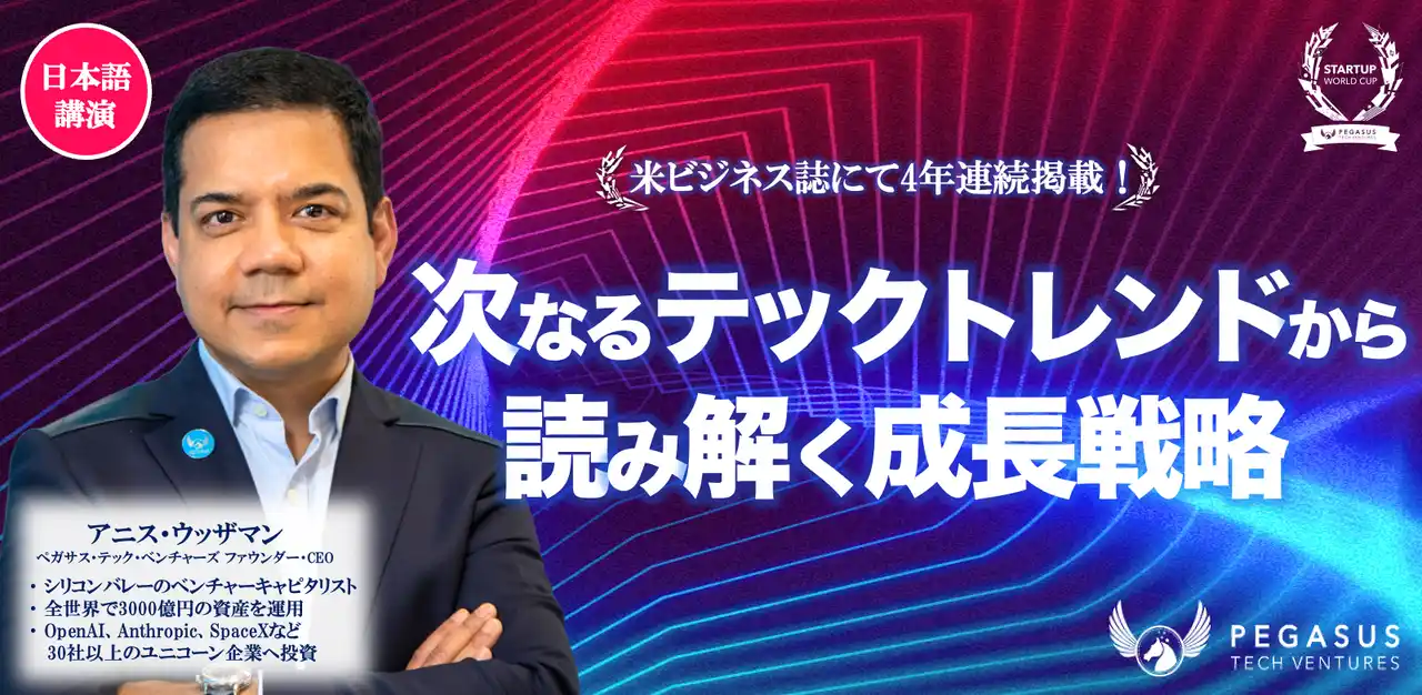 ペガサス・テック・ベンチャーズ(本社:米国カリフォルニア州サンノゼ、代表:アニス・ウッザマン)は、「スタートアップワールドカップ2026」名古屋予選にて、「次なるテックトレンドから読み解く成長戦略セミナー」(日本語講演)を開催いたします。 |