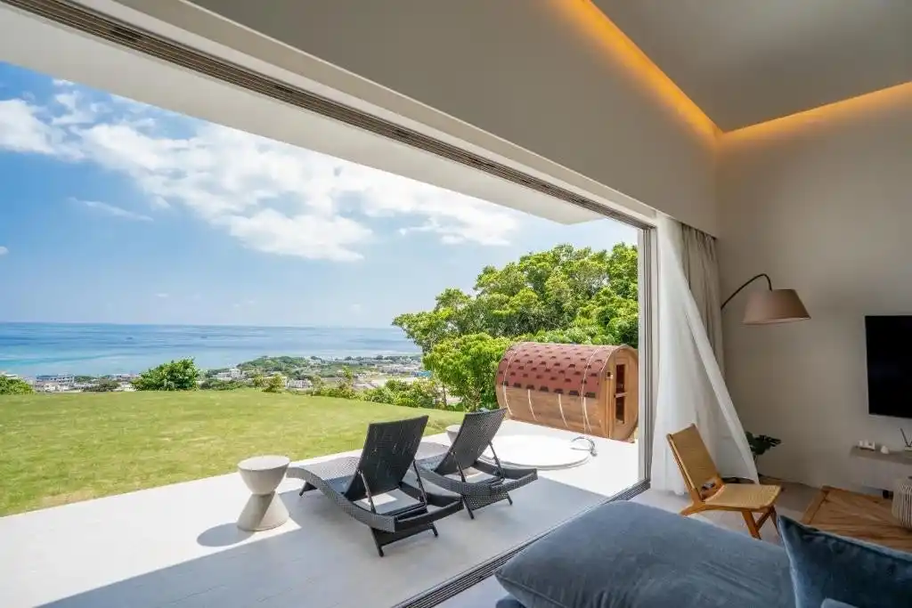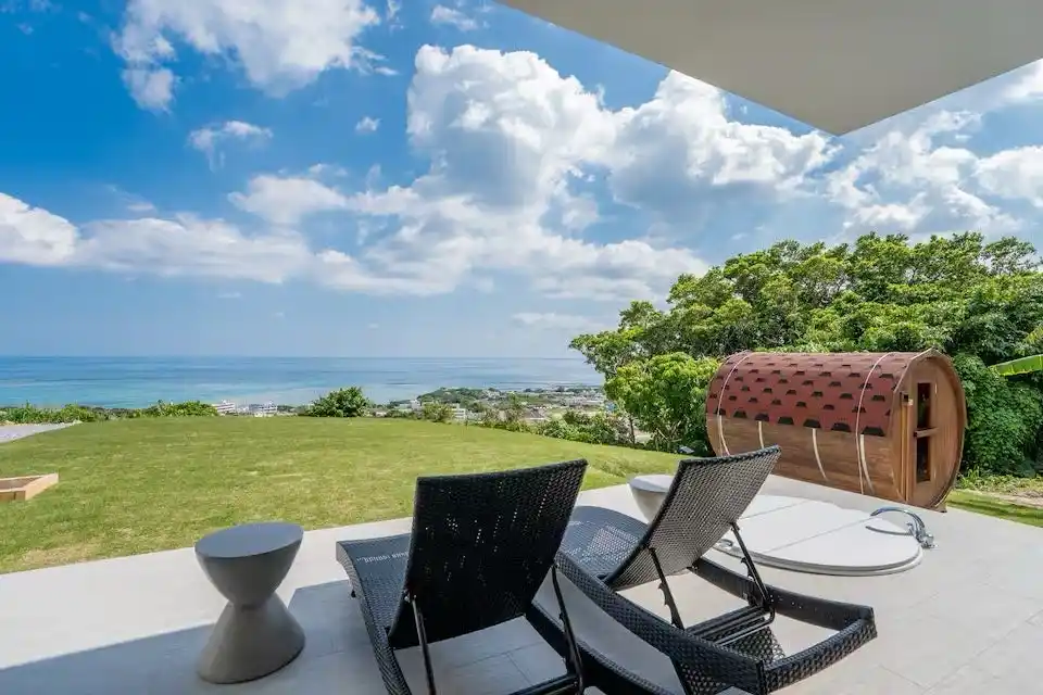 大きく開かれたテラスからは、時間とともに表情を変える沖縄の海と空を堪能できます。朝焼けから夕焼け、そして星空へと移り変わる景色は、ここでしか味わえない特別な体験です。 |