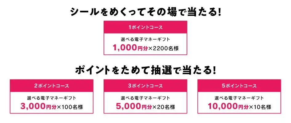 ポイントに応じて最大10,000円分の電子マネーギフトが抽選で当たります。 |