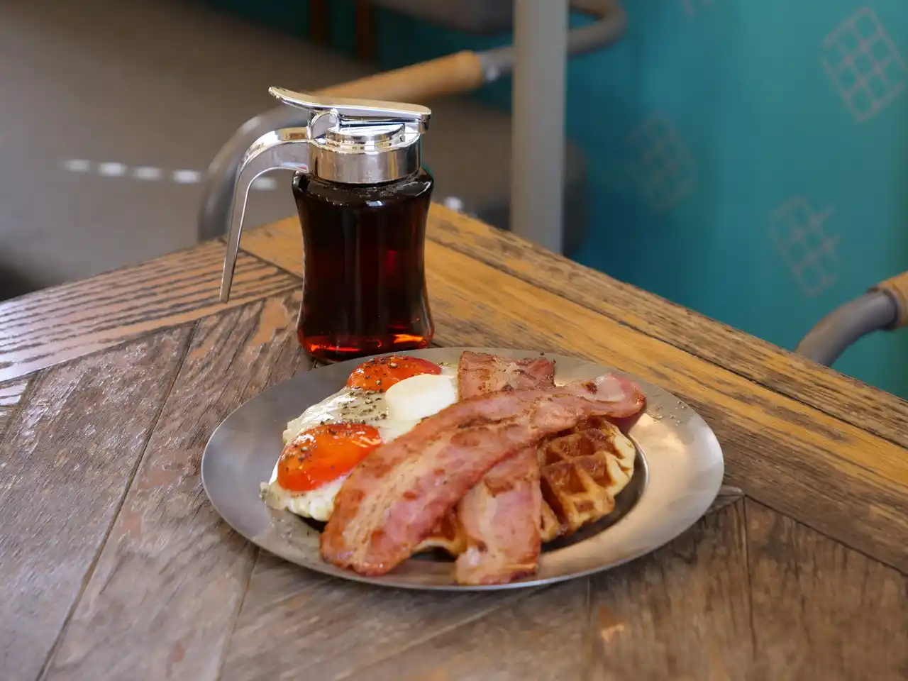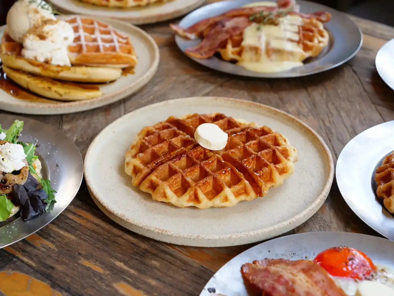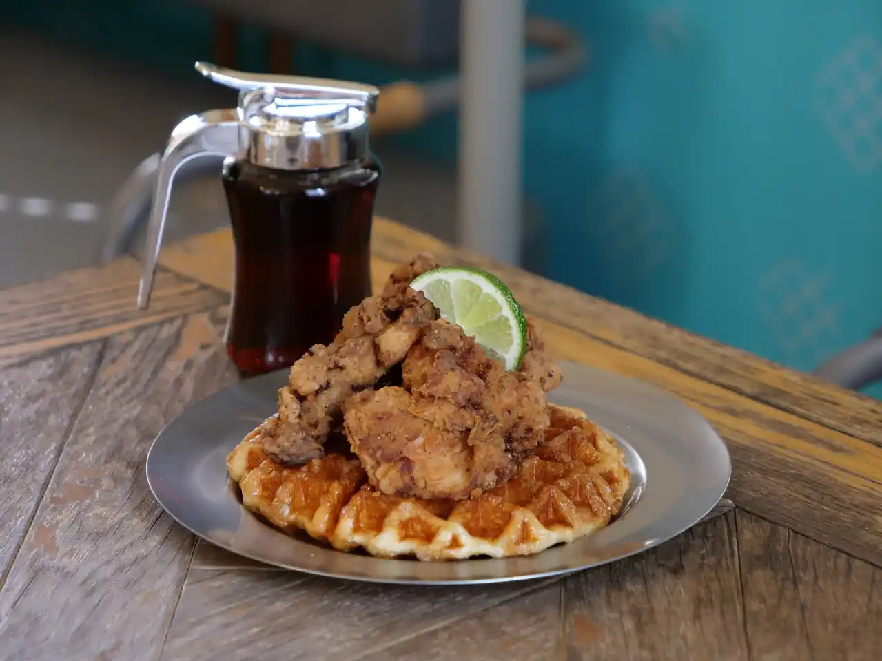 | 自家製フライドチキンとワッフルを組み合わせた、食事系プレート。 | ||||||||||||||