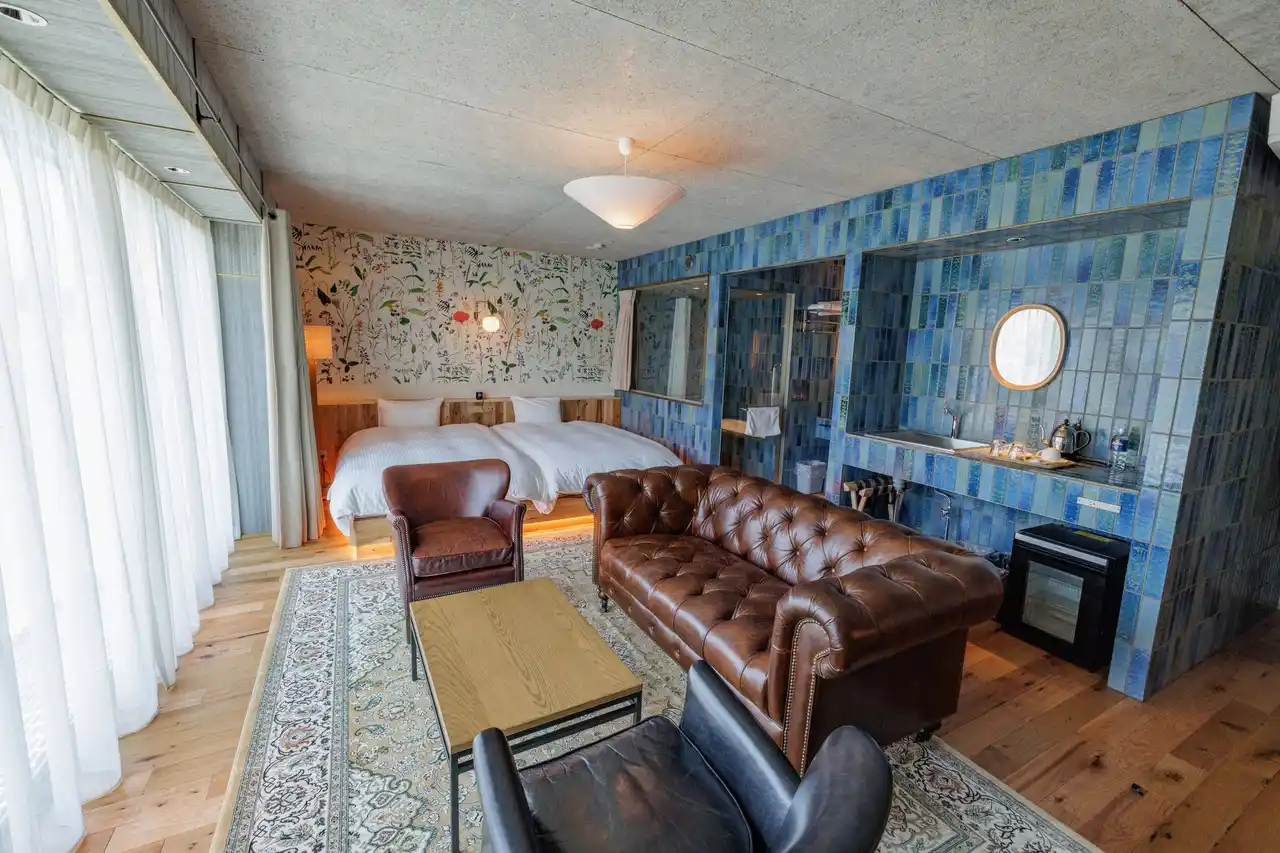 宿泊施設「ホテルパラディソ」は全37室。那須の自然を感じながら多様な使い方が可能。館内は、ユニークな柄の壁紙が全面に施され、リゾート感と温かみを兼ね備えた遊び心溢れる空間。客室内は、一部屋ごとに異なる趣で、ナチュラルな素材を活かしたインテリアをお楽しみください。 |