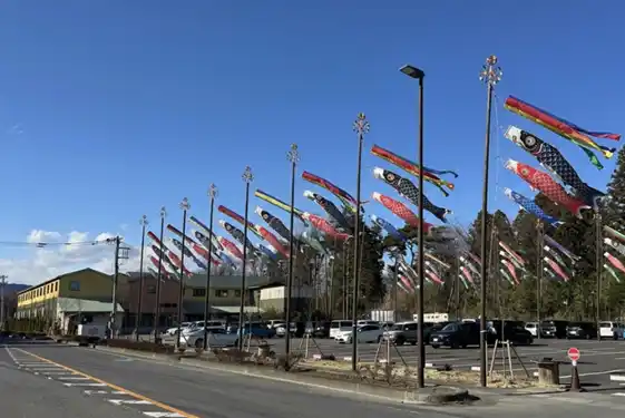 見どころ: 那須の強風を力に変えて鯉のぼりが泳ぐ姿は、お子様連れのご家族はもちろん、フォトスポットとしてもお楽しみいただけます。 |