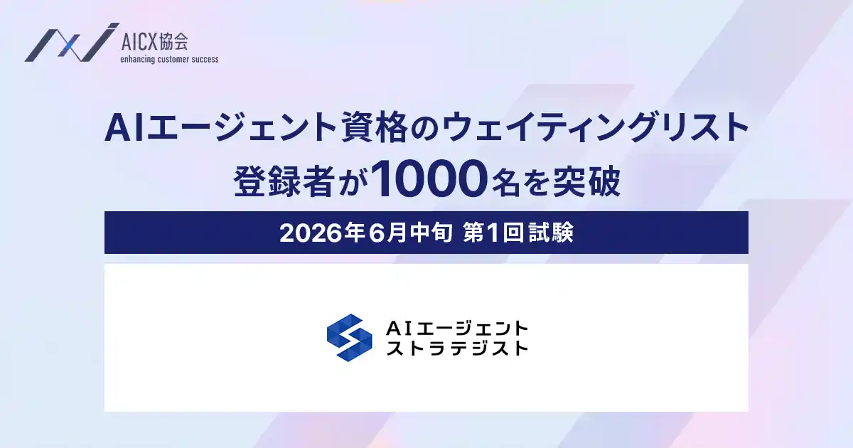 一般社団法人AICX協会(東京都、代表理事:小栗 伸/小澤 健祐、以下、AICX協会)は、2026年2月13日に創設を発表したAIエージェント実装人材向け資格制度「AIエージェント・ストラテジスト」のウェイティングリスト登録件数が、2026年3月17日時点で1,000件を突破したことをお知らせいたします。 |