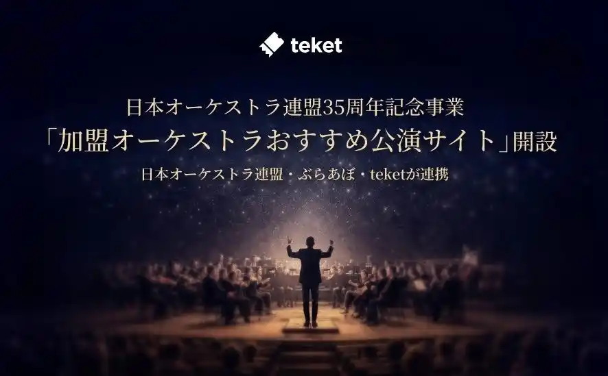株式会社teket(本社:東京都中央区、代表取締役社長:島村奨、以下「teket」)は、公益社団法人日本オーケストラ連盟(以下「日本オーケストラ連盟」)、および、株式会社ぶらあぼホールディングス(以下「ぶらあぼ」)と連携し、同連盟の創立35周年記念事業の一環として「加盟オーケストラおすすめ公演サイト」を2026年3月31日に開設いたします。 |