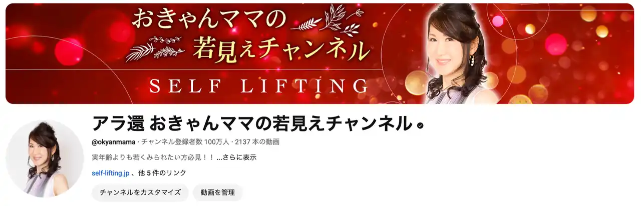 | たるみ改善コンサルタントの「おきゃんママ」は、独自メソッド「顔ダンス」によりセルフリフティング文化を提唱。YouTube上で強固なファンコミュニティを形成し、登録者100万人を突破しました。 | |||