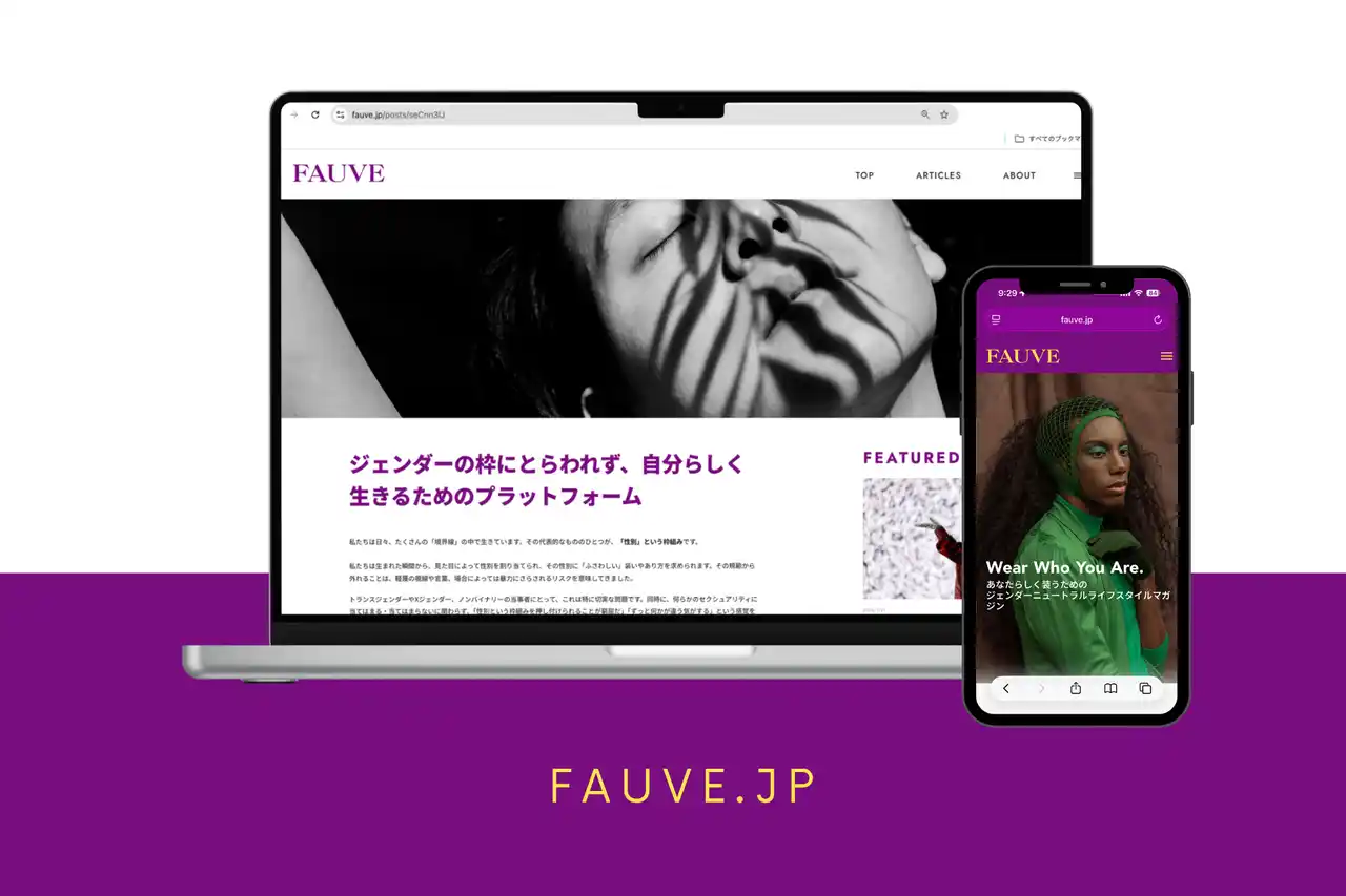 株式会社Fauve(本社:東京都江東区、代表取締役:法本蘭)は、ジェンダーニュートラルなファッション・ライフスタイル情報を届けるウェブメディア「Fauve」を、2026年3月31日(トランスジェンダーの日)にリリースいたします。 |