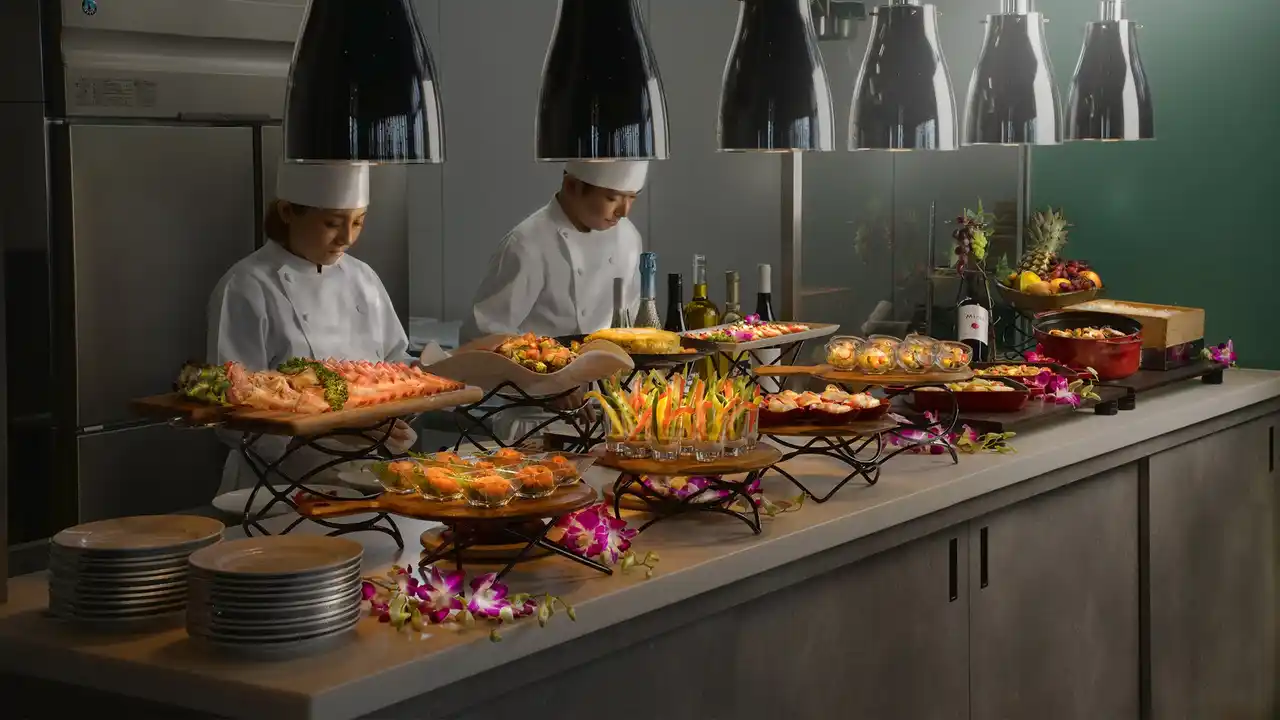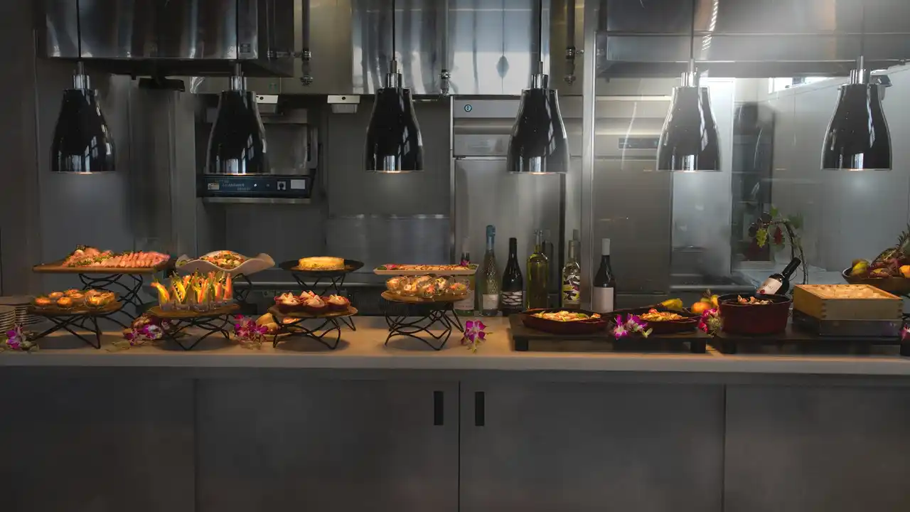 | ライブキッチンでは、「ローストビーフ」または「ステーキ」を週替わりでご提供。シェフが目の前で丁寧に焼き上げることで、肉本来の旨味を引き出した一皿を、臨場感あふれる演出とともにお楽しみいただけます。 | ||||||||||||||