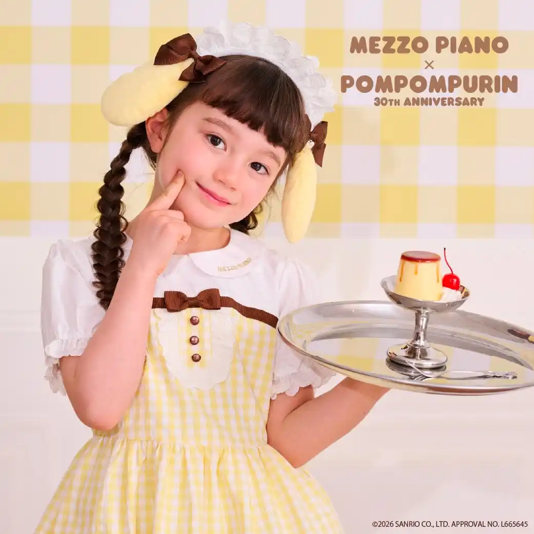 株式会社ナルミヤ・インターナショナル(本社:東京都港区芝公園/代表取締役社長執行役員 保坂 大輔)が展開する「mezzo piano(メゾピアノ)」より、株式会社サンリオの大人気キャラクター「ポムポムプリン」の30周年を記念したスペシャルコラボアイテムが登場。全国直営店・公式オンラインショップ「ナルミヤオンライン(https://www.narumiya-online.jp/webshop/ )にて好評発売中。 |