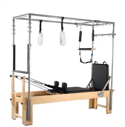 リフォーマーとキャデラックの機能を融合させた、JUNO PILATESの中核を担うマシン。スプリングによる繊細な負荷とサポートを活かしながら、全身のコントロールと安定性を高いレベルで引き出します。フットワークをはじめとした多彩なエクササイズに対応し、初心者から上級者まで一人ひとりの身体に合わせた洗練されたトレーニングを実現。しなやかさと強さを兼ね備えた身体づくりへと導きます。 |