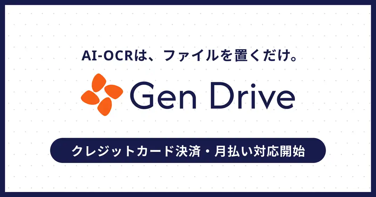 株式会社Hi-story(本社:東京都世田谷区、代表取締役:松山 岳史、以下「当社」)は、2026年3月31日(火)より、生成AI搭載のSaaS型AI-OCRサービス「Gen Drive(ジェンドライブ)」において、クレジットカード決済および月払いプランの提供を開始いたします。これまで年払い・銀行振込のみだった有料プランの決済方法を拡充し、スタンダードプランは月額12,500円(税抜)から、初期費用ゼロ・最低契約期間なしでご利用いただけます。 |