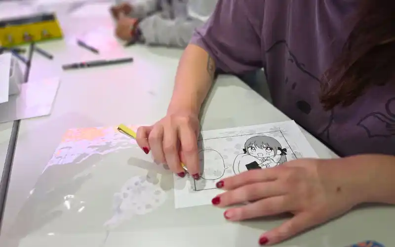 イベントでは、プロの漫画家による指導のもと、アナログ漫画ならではの、ペン入れやスクリーントーン貼りを体験いただきました。 |