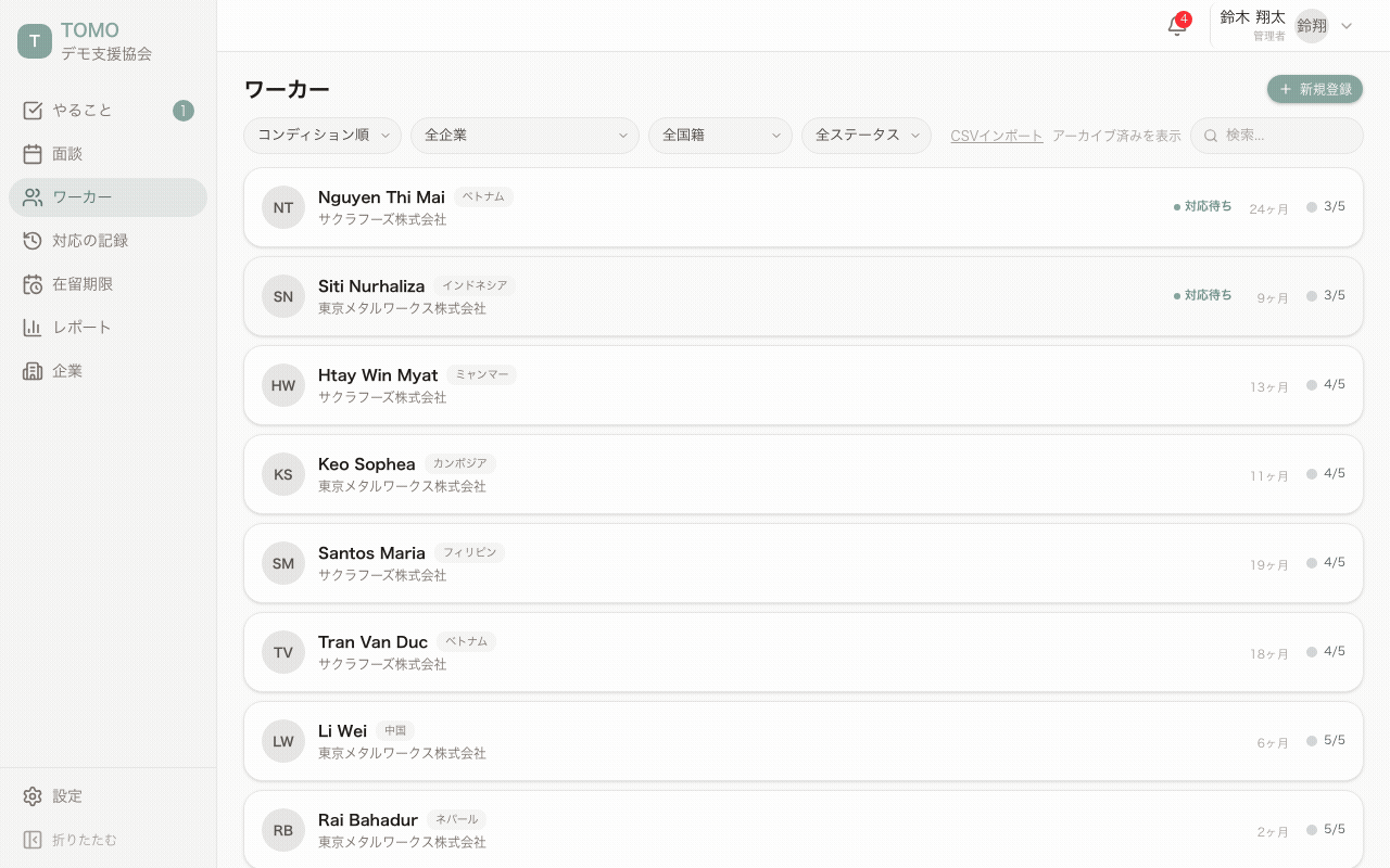 2027年4月の育成就労制度施行に向けて、TOMOを全国の支援機関に届けていきます。あわせて、支援機関が蓄積したデータをもとにした業界レポートの公開も予定しています。 |