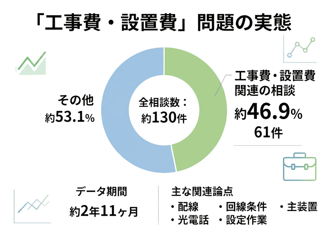 工事費関連の相談が61件(約46.9%)と約半数を占めた |