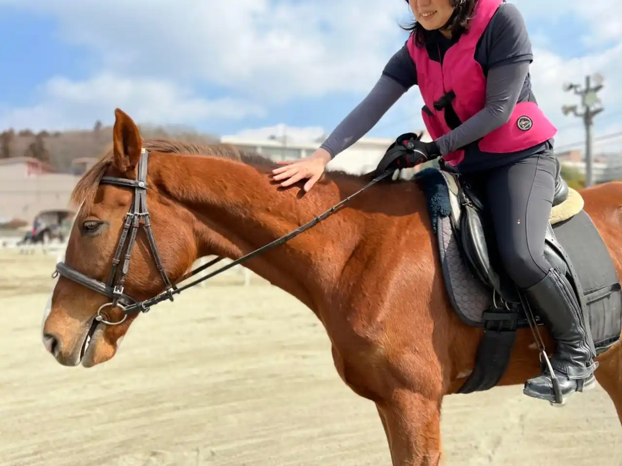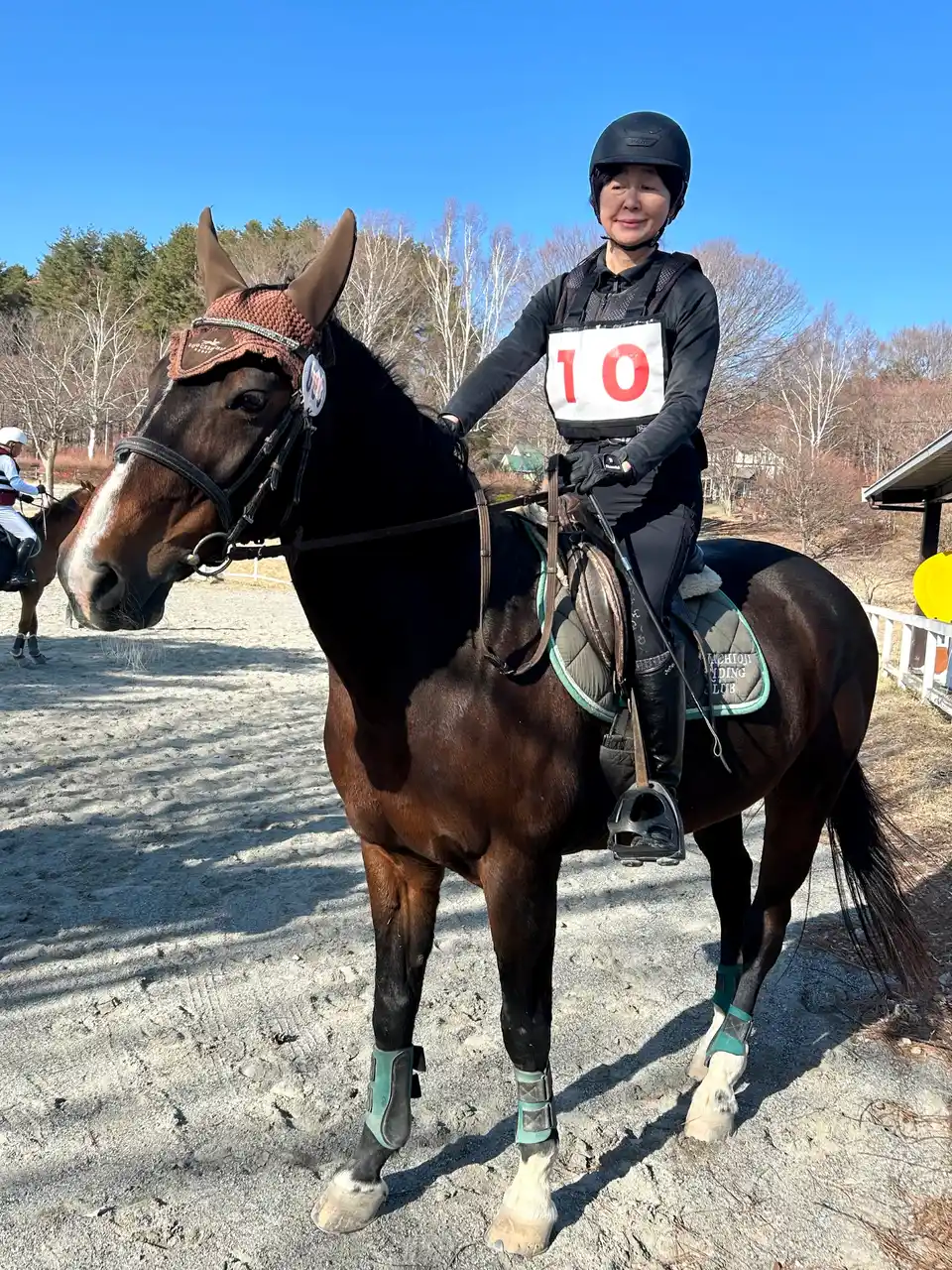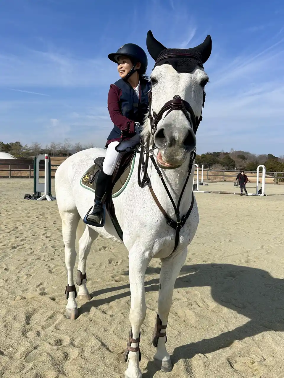 馬上では自然と笑顔がこぼれる。 |