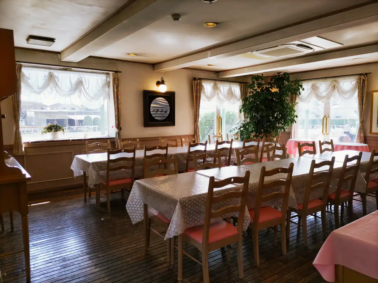 休憩所からは、他のレッスンの様子も見られる。 |