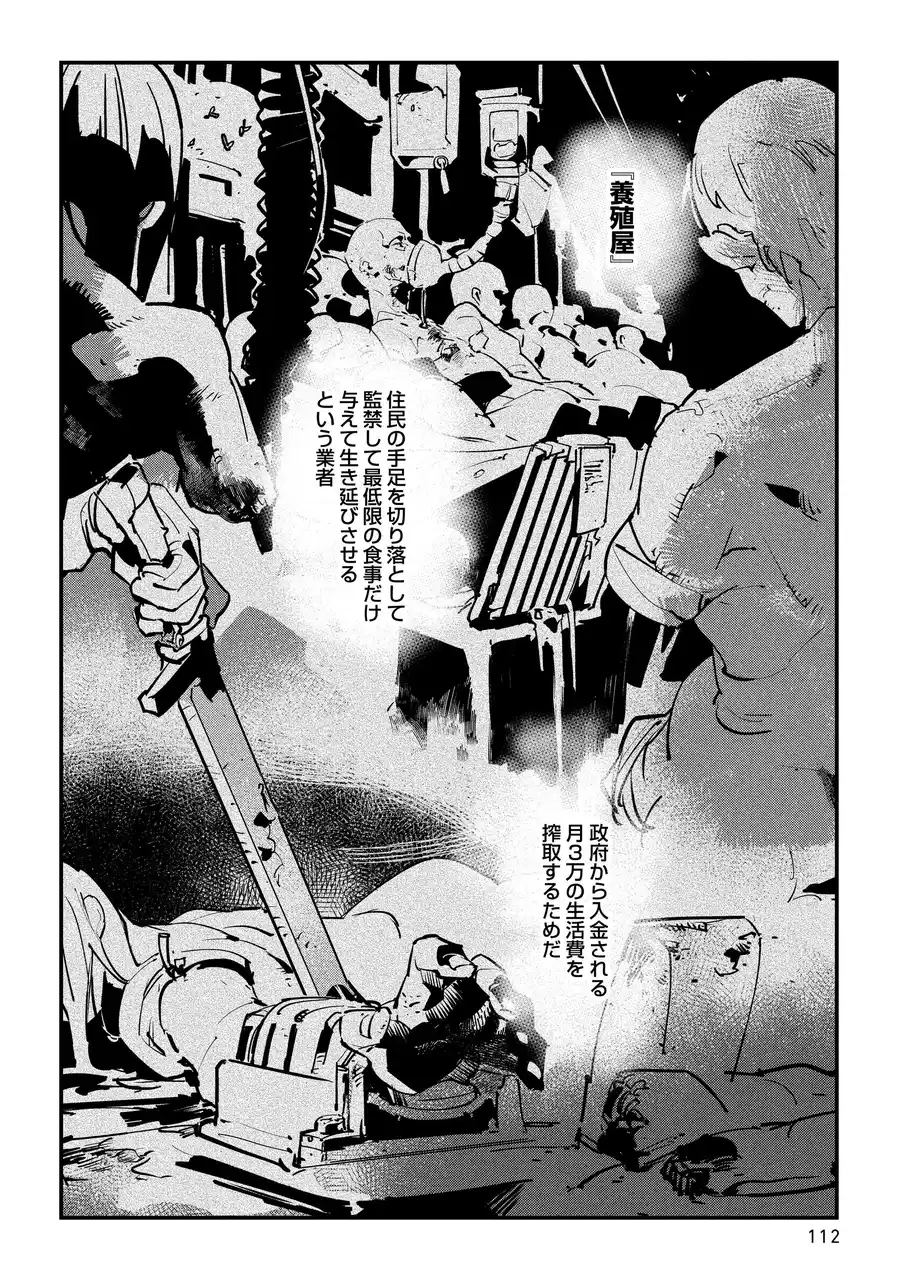 殺人鬼"夜蜘蛛"襲来―― その凶悪な魔の手を辛くも振り払った久世は、自治会で一目を置かれる存在に。 討伐賞金で武装を整えた彼の次なるミッションは、自治会の罪人を"養殖屋"に売りに行くこと。 人間の手足を切って家畜として飼う、非道ビジネスの実態とは……? 鬼才・狂気太郎のマッドホラー小説をコミカライズ、法律無き実験社会での殺人サバイバル巨編、第3巻!! |