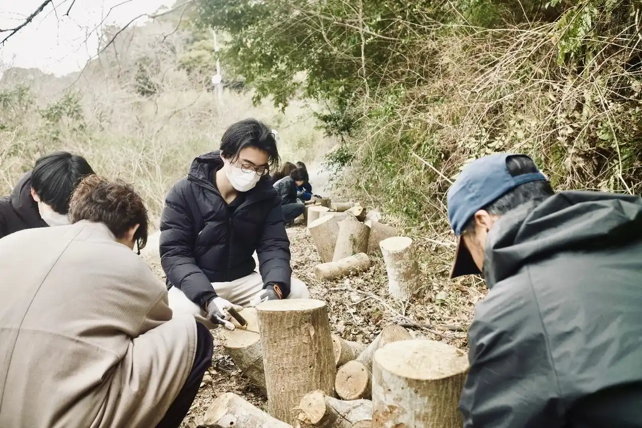 里山の間伐材を活用する原木しいたけづくりを地域の農家から学んで手を動かす体験 |