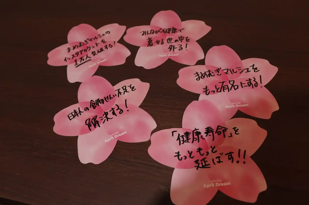 こうした背景から、私たちは「夢や目標を言葉にし、誰かと共有すること」に大きな価値があると考えています。「April Dream」への参画は、その想いを社内だけでなく地域へと広げられる機会だと感じました。「まめむぎマルシェ」が皆さまと夢を語り合い、前向きな一歩を後押しするできる場となれば幸いです。 |