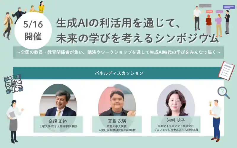 特定非営利活動法人みんなのコード(神奈川県横浜市、代表理事:杉之原 明子、以下みんなのコード)は、2026年5月16日(土)に、「生成AIの利活用を通じて、未来の学びを考えるシンポジウム」を、日本マイクロソフト株式会社の協力のもと開催します。 |