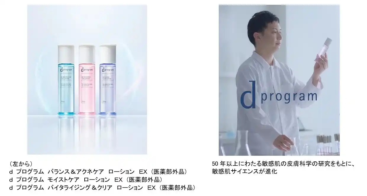 敏感肌用スキンケア売上No.1※4の「dプログラム」より、2025年10月21日(火)にリニューアル発売した高機能土台化粧水※1・乳液『d プログラム モイストケア ローション EX』ほか【全15品 参考小売価格1,000円~4,100円(税込1,100円~4,510円)*】が、発売から約5か月で累計出荷個数250万個※2を突破しました。リニューアル後、特に中心商品である化粧水が躍進し、2026年の目標としていた敏感肌向け化粧水カテゴリーにおけるシェアNo.1※5を1年前倒しで達成。さらに、ブランド全体の2025年売上金額は3年連続で過去最高を記録しました※6。 |