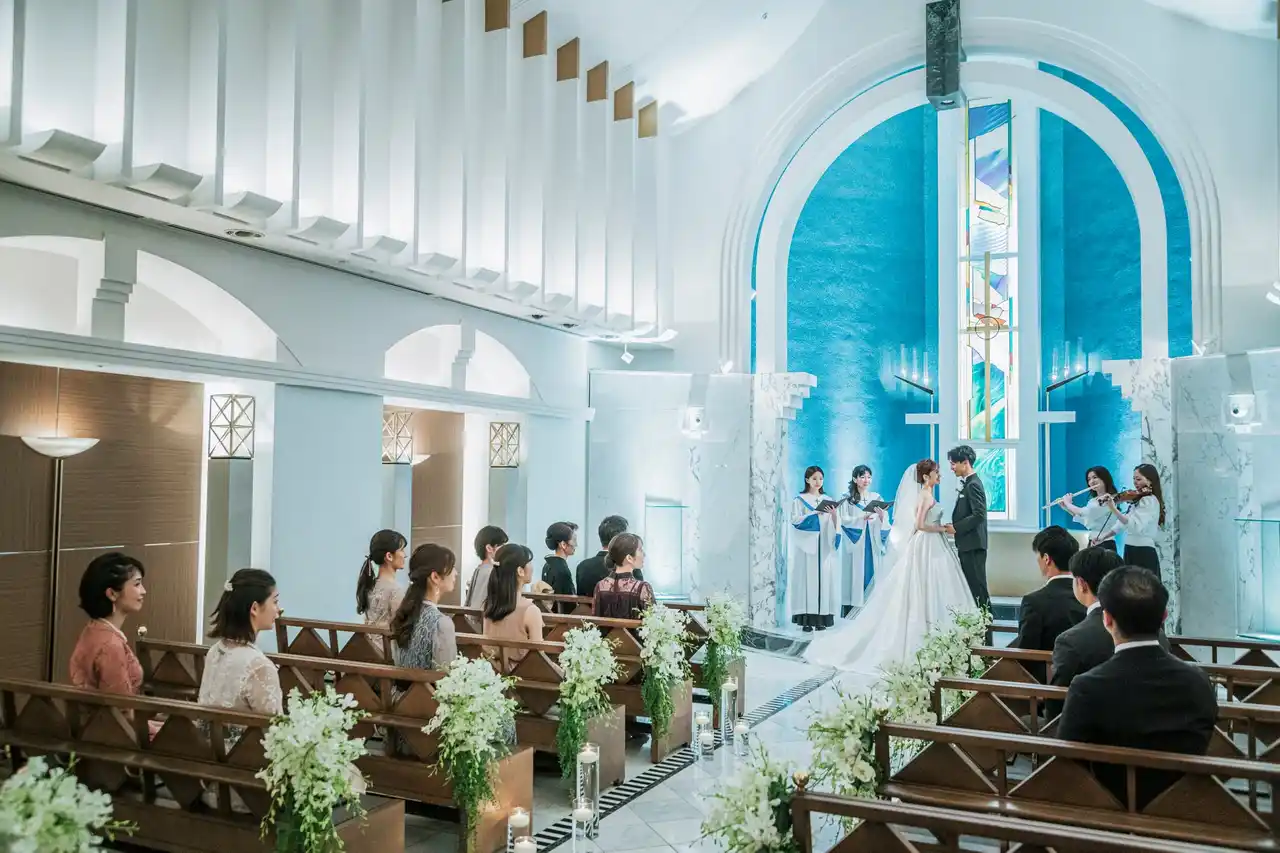 当ホテルの「そよ風の教会」が3年連続で高い評価を受けた最大の理由は、唯一無二の“ブルー”と、温もりに満ちた空間づくりにあります。特に花嫁から圧倒的な支持を得ているのが、以下の3つの特徴です。 |