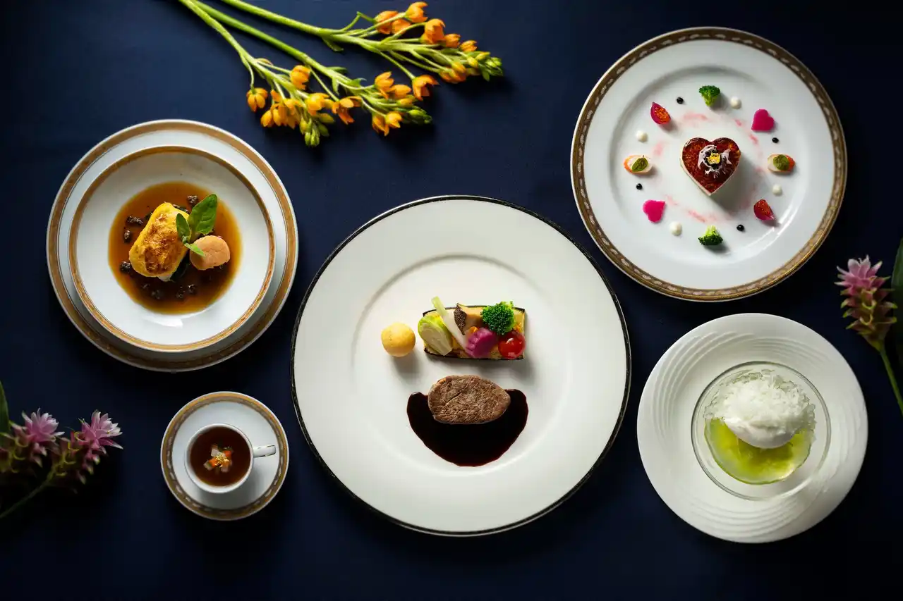 美しいチャペルでの感動の後は、1964年の東京オリンピックから受け継がれる、ホテルニューオータニの伝統と格式によるおもてなしの時間が待っています。極限まで旨味を凝縮した「伝統のコンソメスープ」など、世代を超えて愛される王道のフランス料理は、すべてのゲストの心に刻まれる最高のおもてなしをお約束します。 |