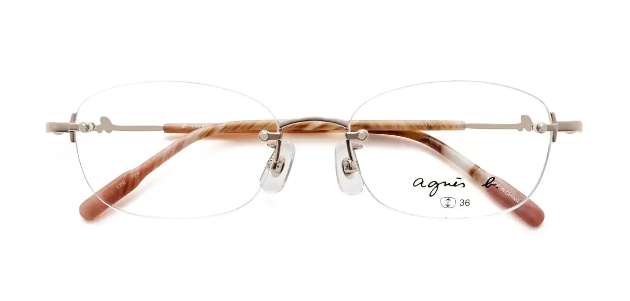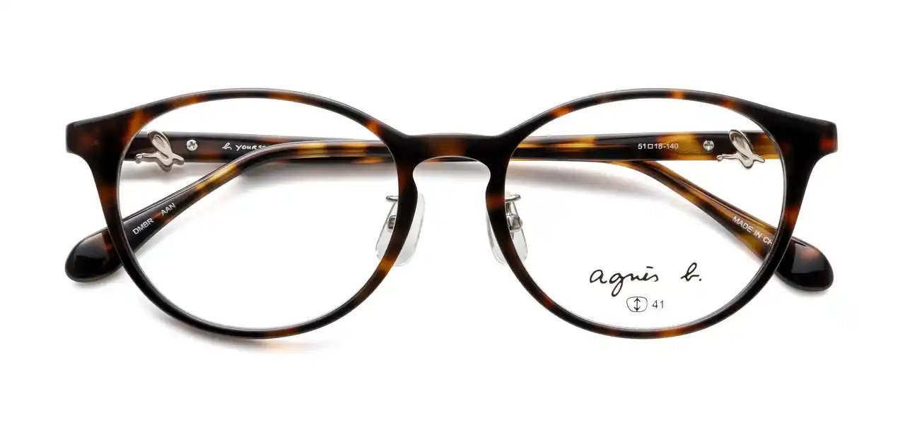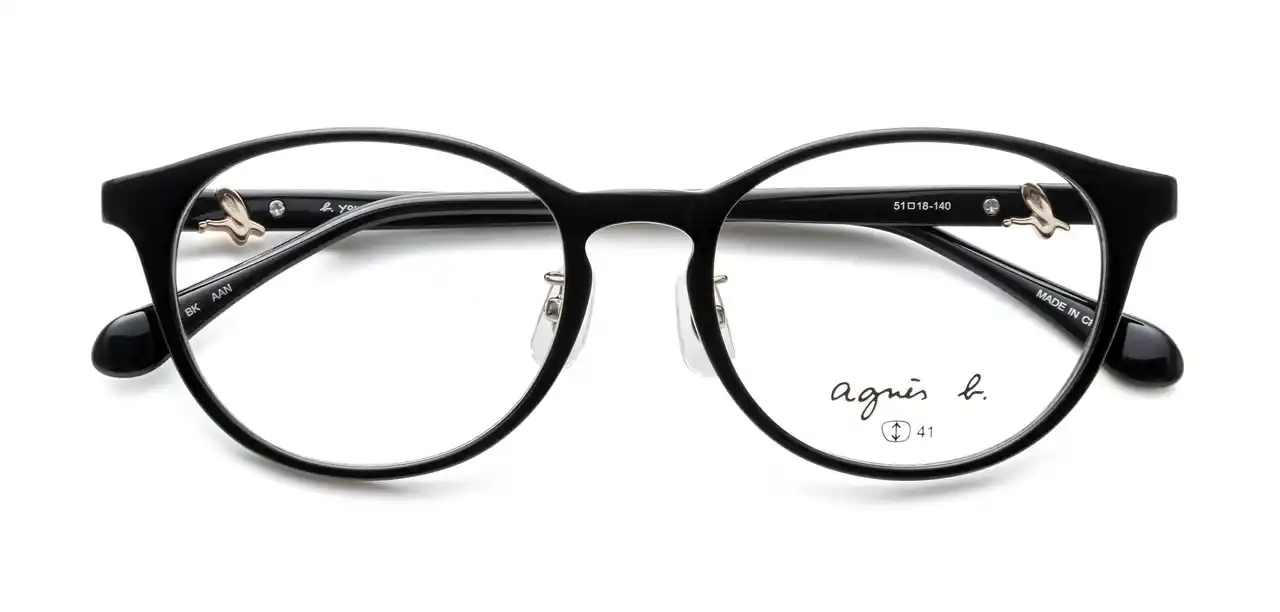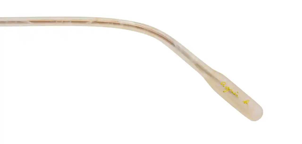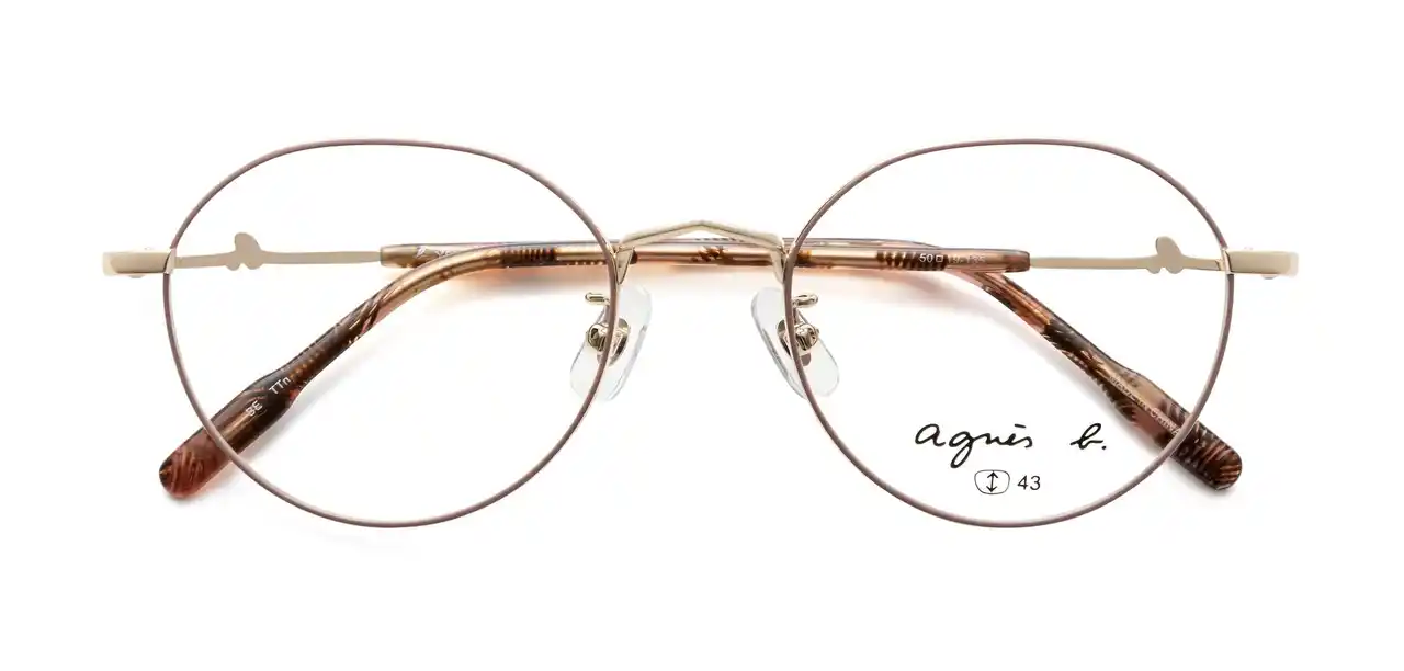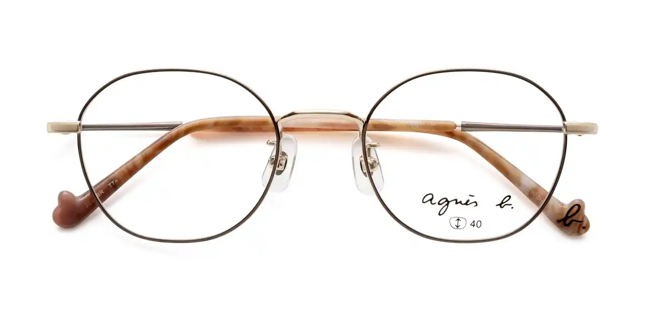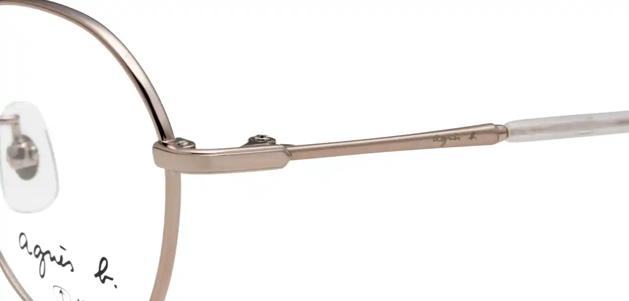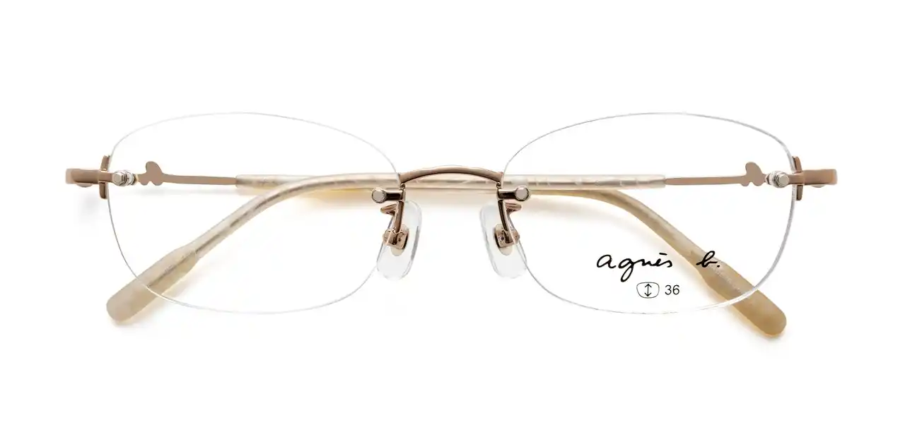 テンプルやモダンエンドには、ブランドのアイコンである“b.”マークをあしらい、さりげないアクセントを加えています。細部にまでブランドの世界観を表現することで、どの角度から見てもアニエスベーならではのスタイルを楽しめるアイウェアに仕上げました。 |