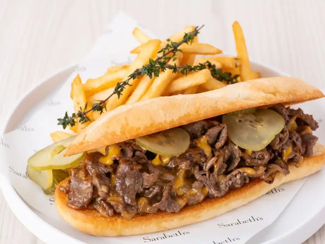 「小倉フレンチトースト」は、サラベス特製の卵とバターの香りがふんだんに広がるふわふわの“ハッラーブレッド”に、上品な甘さの小倉餡をサンドし、アパレイユにたっぷり浸して香ばしく焼き上げてた春限定のフレンチトースト。ほどよい塩気を加えたマスカルポーネホイップを贅沢にトッピングし、ストロベリーソースと合わせることで、甘みの中に爽やかな酸味が広がります。 香ばしく焼き上げた牛肩スライスに甘みを引き出したソテーオニオンとコク深いレッドチェダーを合わせ、ピクルスのほどよい酸味で引き締めたフィリングを、外はカリッと中はふんわりのソフトバゲットにサンドし、仕上げにフレンチフライを添えた「フィリーチーズステーキサンド」は、上品で食べ応えのある味わいです。アメリカ・フィラデルフィアの名物をサラベスらしく上品にアレンジした、季節限定メニューをぜひお楽しみください。 |