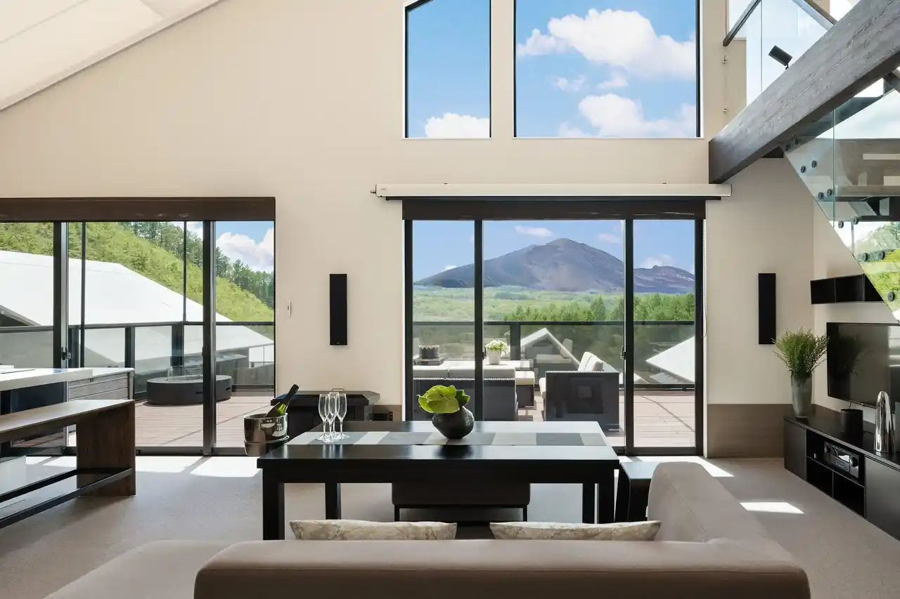 | 世界的デザイナー・コシノジュンコ氏の監修により誕生した「あさま空山望」は、北軽井沢の大自然の中に佇む一棟貸しヴィラリゾートです。60,000平方メートル を超える広大な敷地には、全16棟の宿泊ヴィラやレストラン「天空柁イニング」、温浴施設「天空スパ」、ラウンジ、ドッグランを贅沢に配置。全棟からは雄大な”浅間山ビュー”の絶景を一望でき、大自然に溶け込んだグランピングのような空間で愛犬も一緒に非日常を堪能いただけます。まるで別荘を訪れたかのようなプライベートなひと時をお過ごしください。 | |||