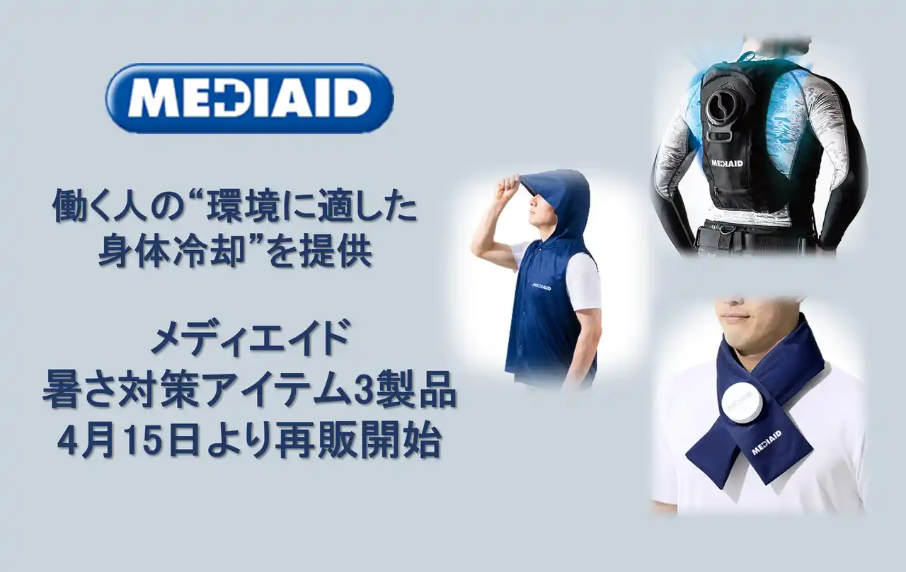 | 日本生まれの日常生活向けサポーターブランド「MEDIAID(メディエイド)」を展開する、日本シグマックス株式会社(本社:東京都新宿区、代表取締役社長:鈴木洋輔)は、4月15日(水)より暑さ対策アイテム3製品の再販をスタートします。 | ||||||||||||||||||||