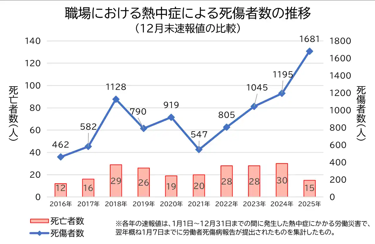 | ※1:厚生労働省「2025年(令和7年)職場における熱中症による労働災害の発生状況(令和7年12月末速報値)」 p.2 | ||||||||||||||||||||