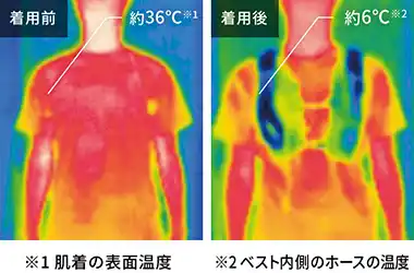 バッテリーの電源を入れると冷水が循環し、身体を素早く冷却することが可能。
