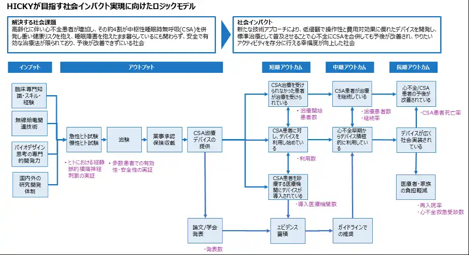 | 心不全の予後を改善するための中枢性睡眠時無呼吸の治療デバイスを開発する株式会社HICKY(本社:東京都文京区、代表取締役:林 健太郎)は、東京ウェルネスインパクトファンドおよびCJS2号ファンドより資金調達を実施いたしました。本資金調達により、次世代治療デバイスの開発を加速し、臨床試験および事業化に向けた取り組みを本格化してまいります。 | ||||||||||||