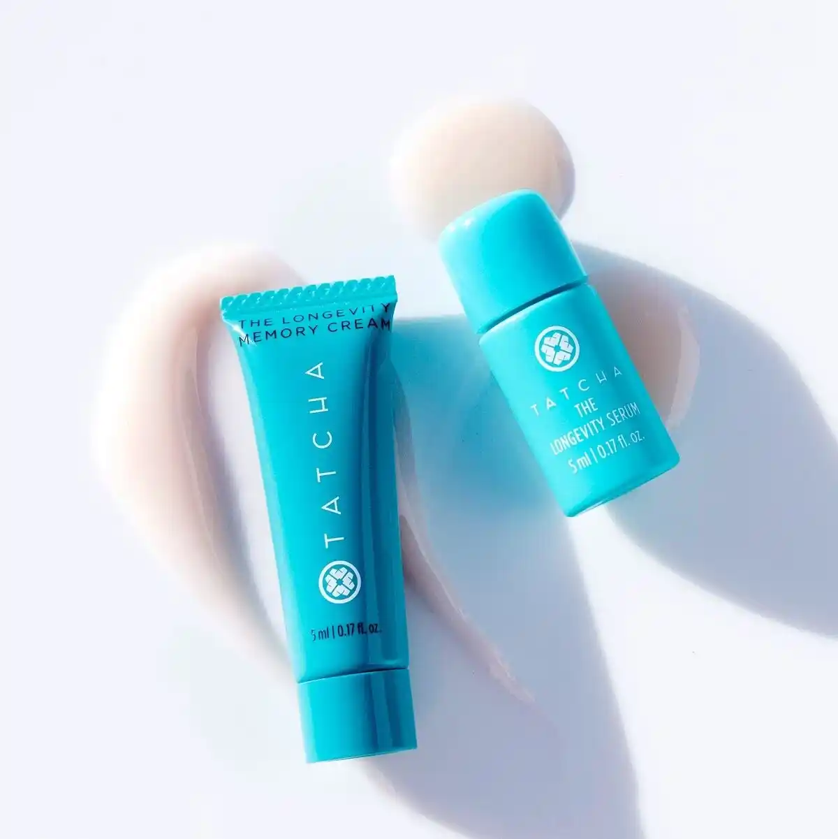 「タッチャ ロンジェビティ セラム」または「タッチャ ロンジェビティ クリーム」現品をご購入で、コレクションをラインでご体験いただけるミニサイズがついた限定セットを数量限定でご用意しております。 |