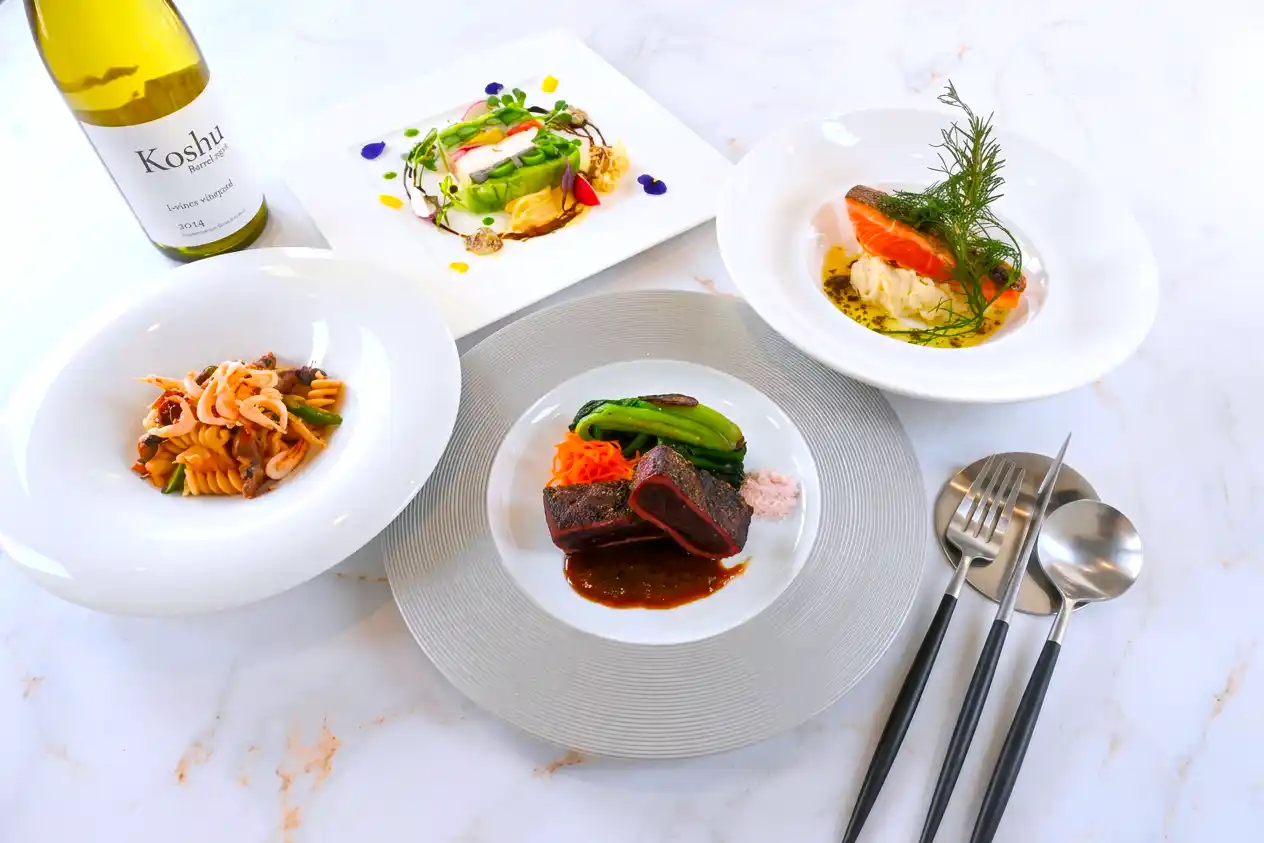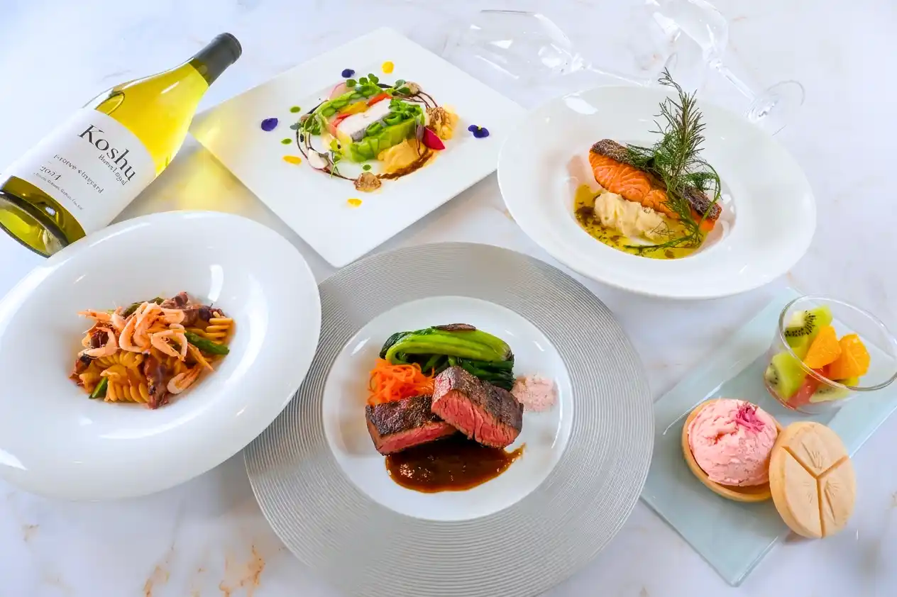 ※メインディッシュは、+ 2,000円で甲州牛、または+5,000円で甲州牛最高ランクフィレ肉への変更も可能です。当日のご希望にも対応可能です。 |