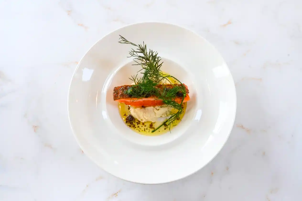 甲斐サーモンのグリル ~焦がしバター醤油と根セロリムース~ |