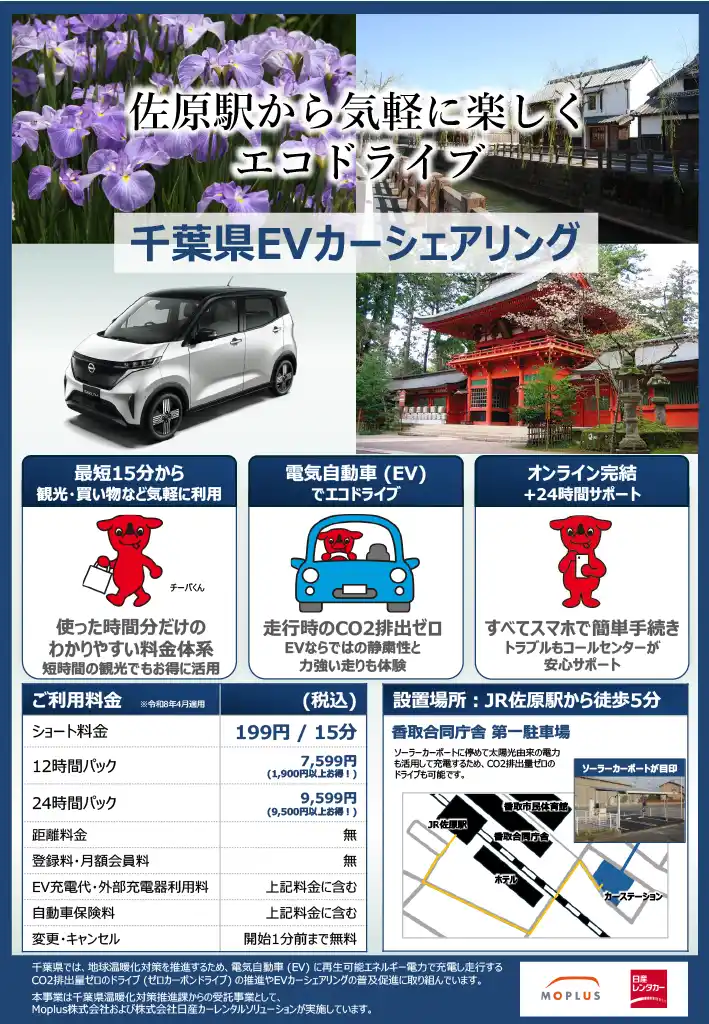 Moplus 株式会社(本社:東京都千代田区、代表取締役 CEO:柳瀬賢、同 COO:中川和明)は、 当社および株式会社日産カーレンタルソリューション(本社:神奈川県横浜市西区、代表取締役:岡本智)が千葉県より運営を受託する、公用車EVカーシェアリングモデル事業が2026年4月1日より開始されることをお知らせいたします。 |