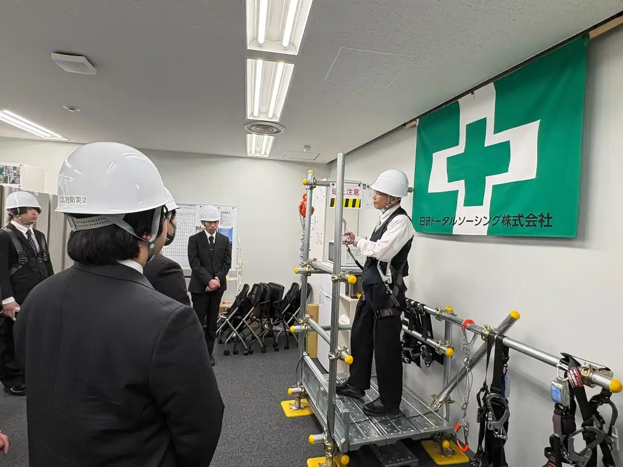 今回の移転により、実技スペースを常設化し、足場を用いた実技や安全掲示板による体験型研修を、より体系的に実施できる環境が整いました。10日間の初期研修では、フルハーネス特別教育や現場での指揮・安全管理を学ぶ職長教育など、現場就業に不可欠な講習を網羅。未経験者が抱く現場への不安を自信に変えて送り出すカリキュラムを提供しています。 |