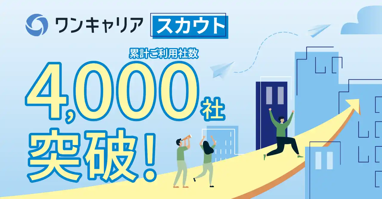 新卒採用サービス「ワンキャリア」を展開する株式会社ワンキャリア(本社:東京都渋谷区、代表取締役社長 執行役員CEO:宮下 尚之、以下「ワンキャリア」)は、スカウトサービス累計ご利用社数が、2026年3月時点で4,000社を突破したことをお知らせします。2025年8月に3,000社を突破してから、およそ7ヶ月での達成となります。