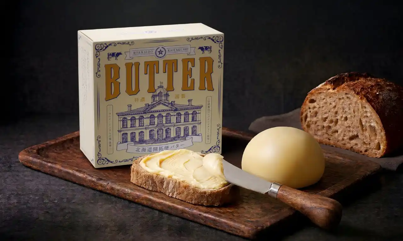 株式会社北の達人コーポレーションは、北海道開拓使時代から150年続く伝統製法で製造した高乳脂肪*の特濃バター『北海道開拓使バター』を2026年3月31日に新発売いたします。北海道産原料を100%使用し、時間をかけて練り上げることで乳脂肪分83%以上に仕上げた濃厚なコクと味わいが特徴のバターです。北海道噴火湾の海水から作られる自然塩「カムイ・ミンタルの塩」を使用し、素材の風味を引き立てるよう設計しています。 |