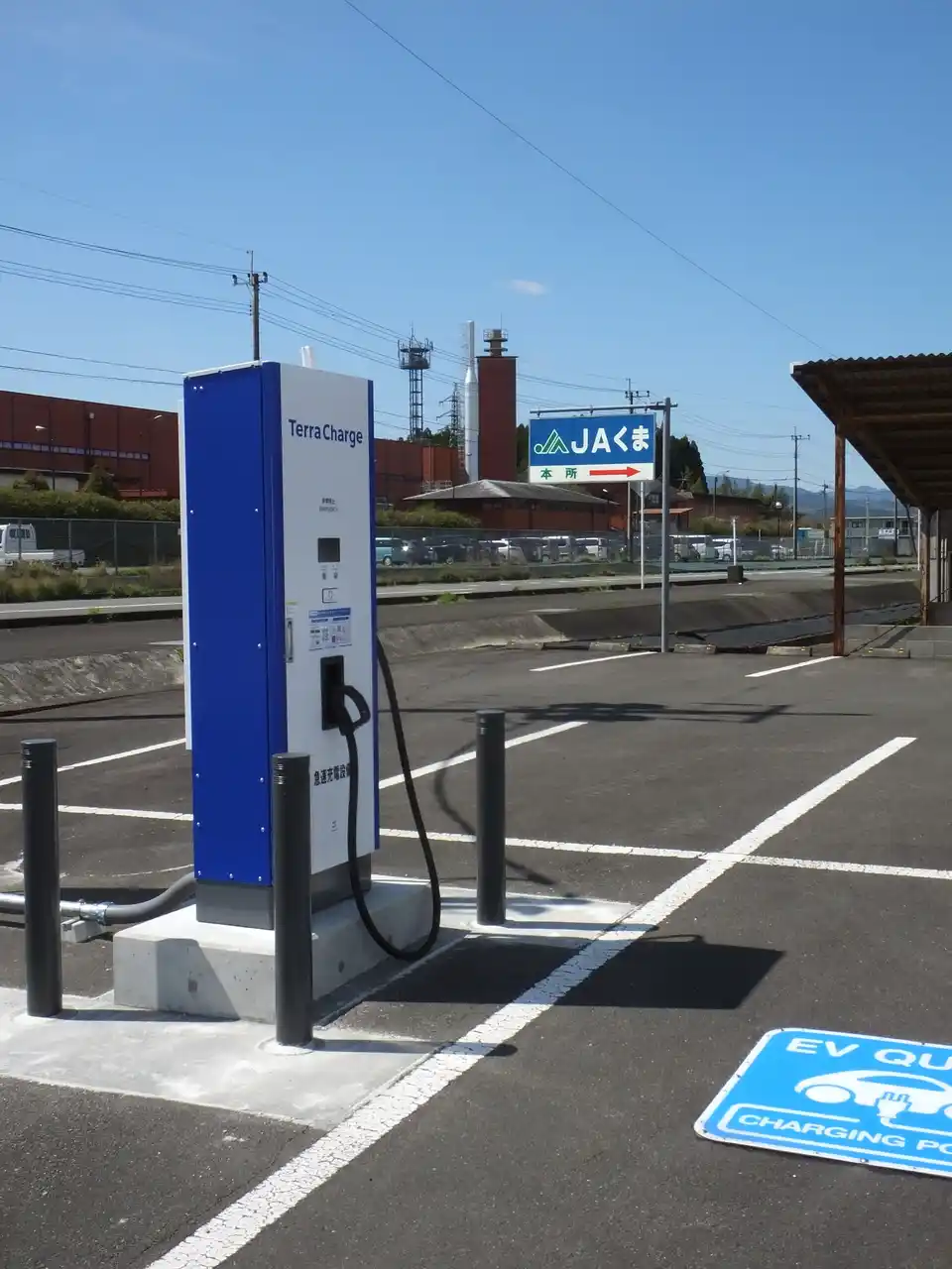 EV(電気自動車)向け充電サービス「Terra Charge(テラチャージ)」を展開するTerra Charge 株式会社(本社:東京都港区、代表取締役社長:徳重徹、以下「当社」)は、JAくま(球磨地域農業協同組合)(本所:熊本県球磨郡錦町、代表理事組合長:福田勝徳、以下「JAくま」)のJAくま 本所、JAくま 人吉支所、総合葬祭 やすらぎ会館 中央、Aコープ なかくまなど計10施設へ50kW出力のEV用急速充電器10口をサービス開始いたしました。
