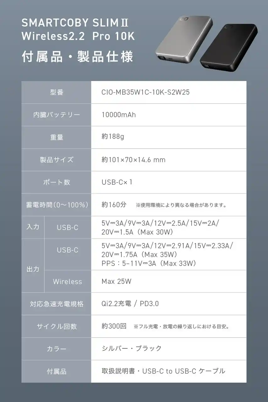 ・製品名:SMARTCOBY SLIMII Wireless2.2 Pro 10K |