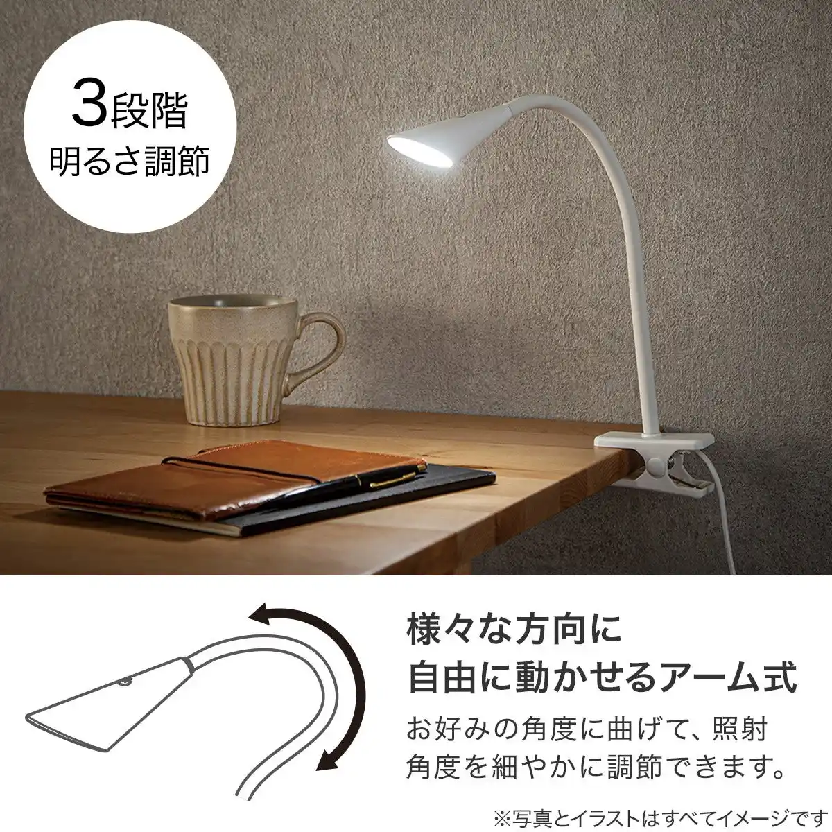 3. デスクを広く使えるクランプ固定&手元に影ができにくい可動アーム設計