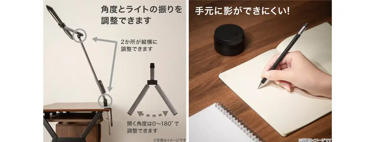 さらに、縦横に可動するアームで手元に影ができにくい角度に調整でき、机全体を均一に照らすことで、お子さまが集中しやすい学習環境を整えます。 |