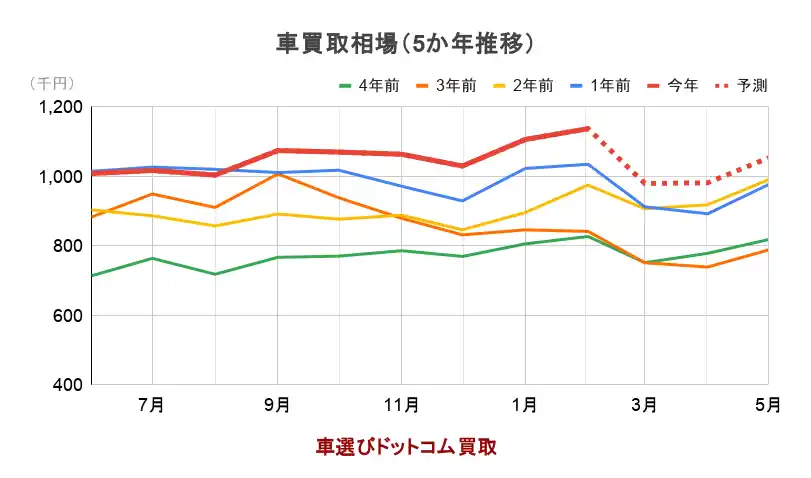 )」より、2月の買取相場動向および過去2~5年の買取相場をもとに分析した、3月以降の車買取相場予測をまとめたレポートをご案内いたします。