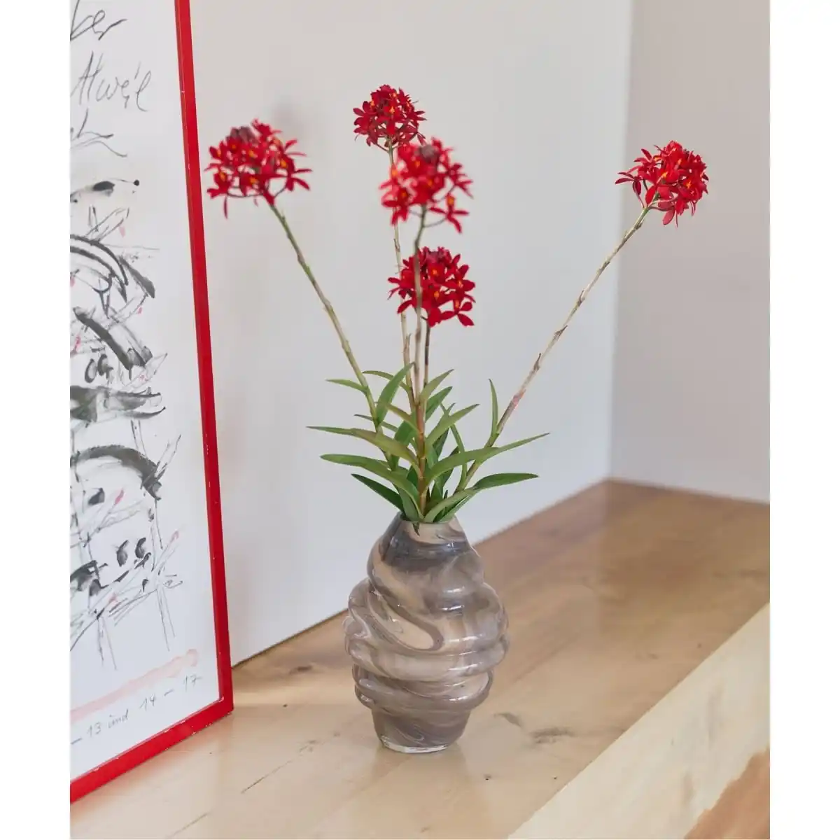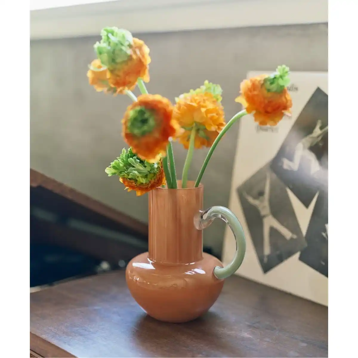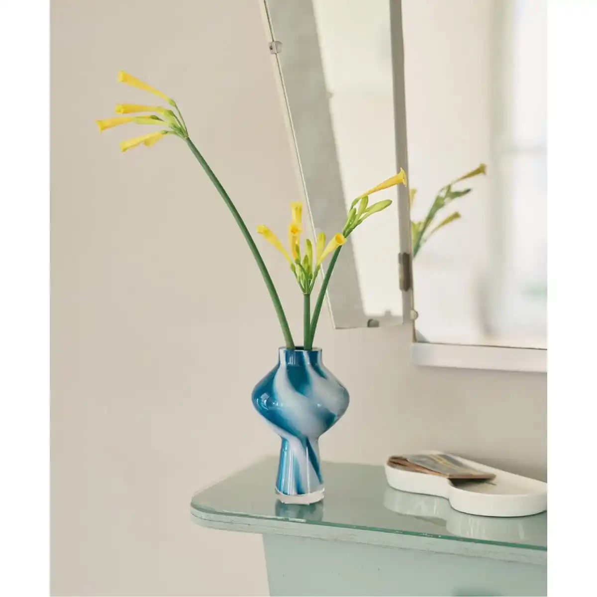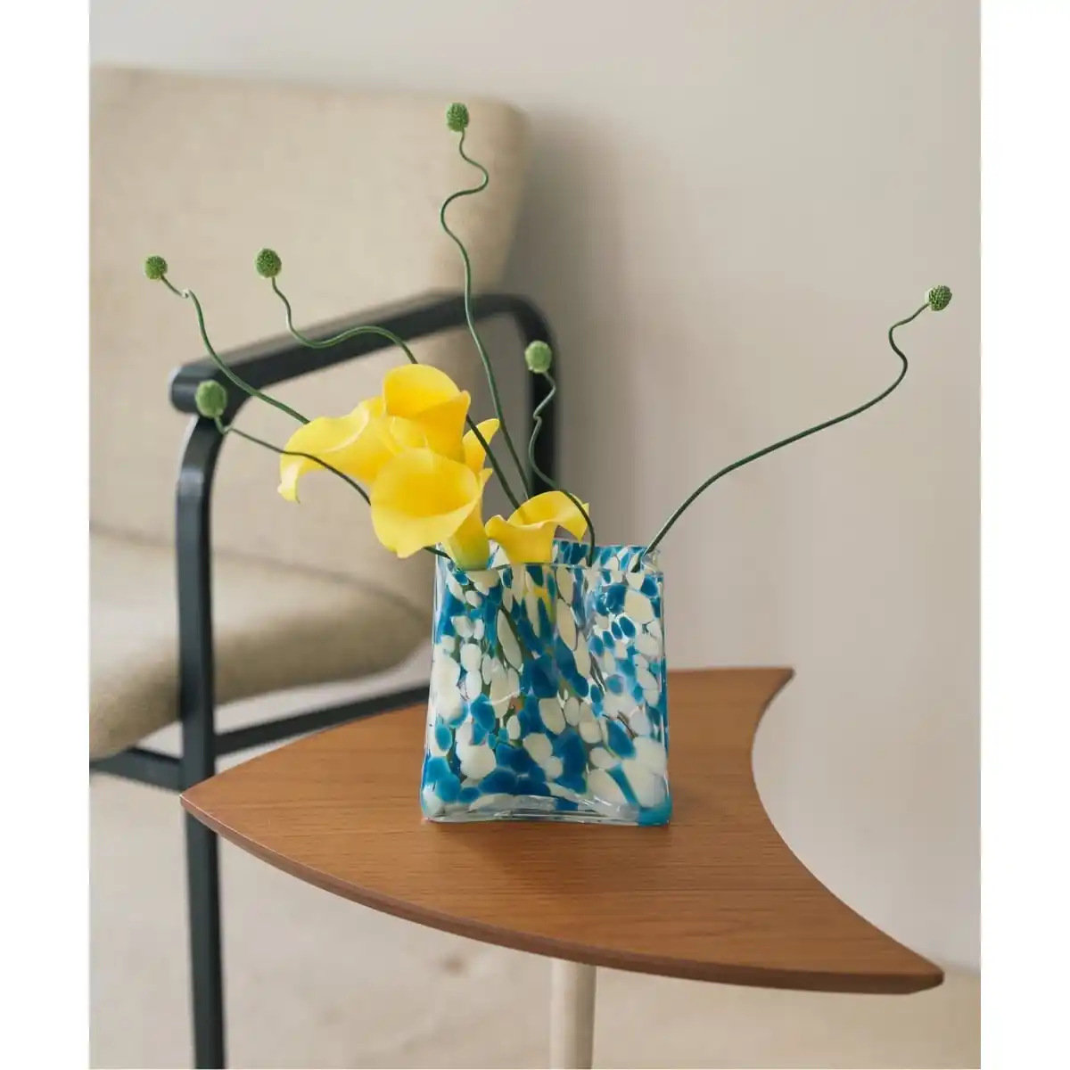 職人が吹き上げる手作業による一点ずつ仕上げが特徴で、フォルムのわずかなゆらぎや、光を屈折させる気泡、色ガラスの濃淡が個性となるように仕上げられており、花束をふんわり活けられるボリュームタイプから、デスクにも置きやすい一輪挿しまで幅広く揃えたラインナップを展開。 |