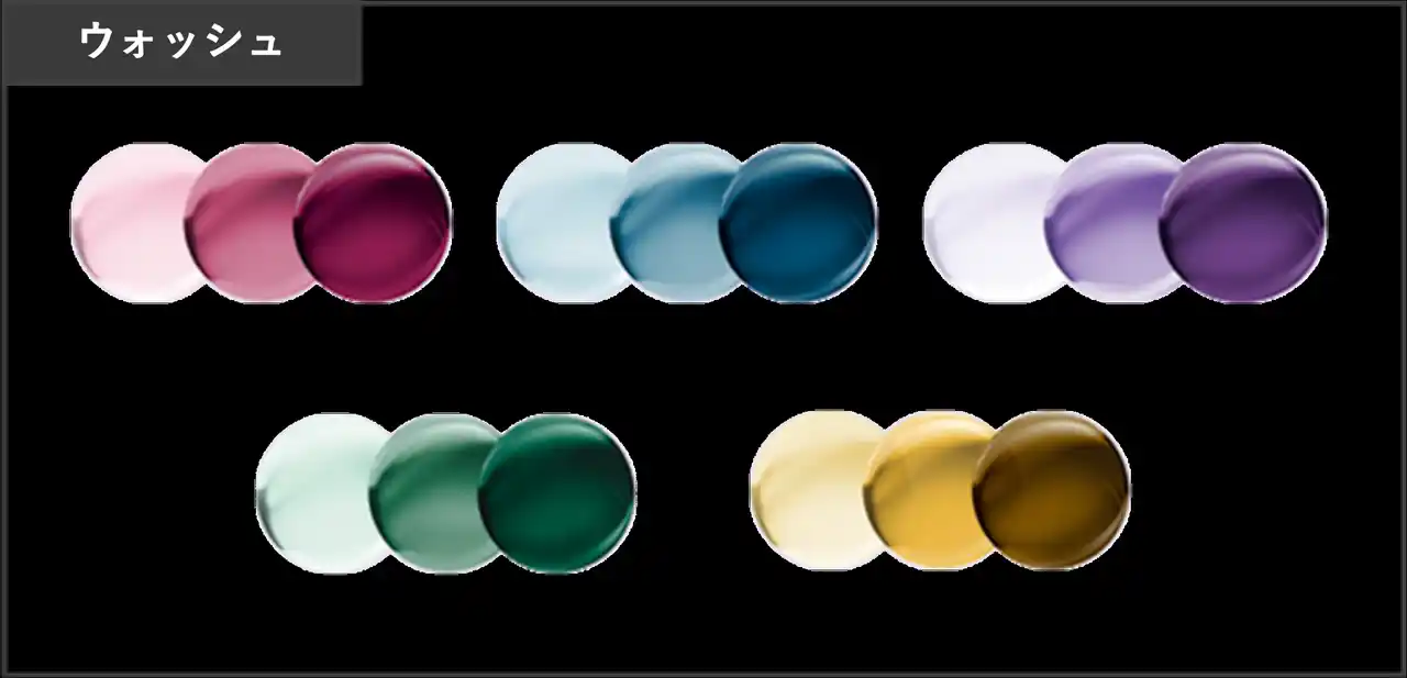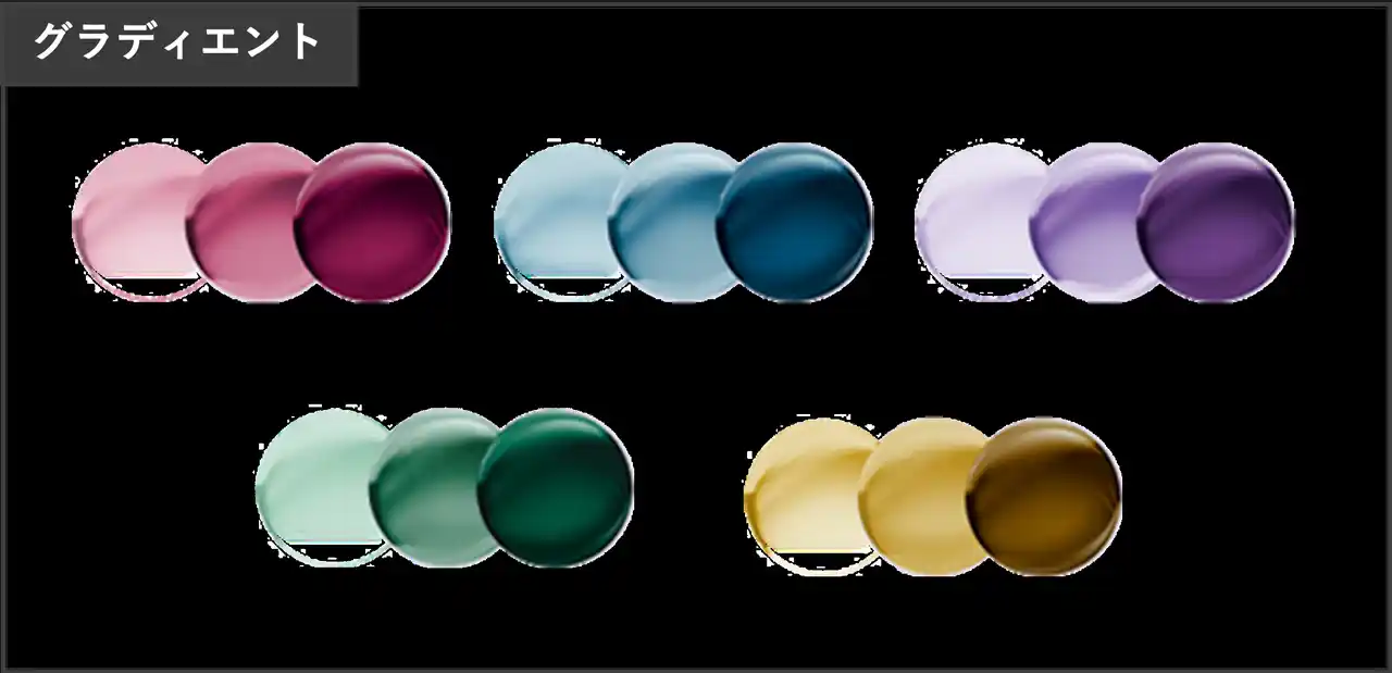 | グラディエントとウォッシュの2タイプを展開し、ルビー、アンバー、サファイア、アメジスト、エメラルドの全5色を展開。あらゆるフレームに合わせやすく、気分やシーンに合わせたスタイルを演出します。控えめで上品な印象から、アクセントを効かせたスタイルまで幅広い表現が可能です。 | |||||||||