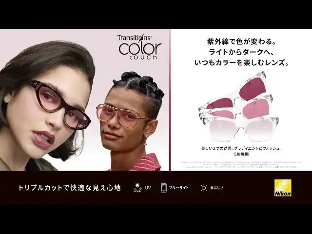 | 株式会社ニコン・エシロールは、次世代調光レンズ「トランジションズ(R) カラータッチ(TM)」を2026年4月1日(水)より全国の眼鏡専門店にて発売いたします。(取扱時期は店舗により異なります。) | |||||||||