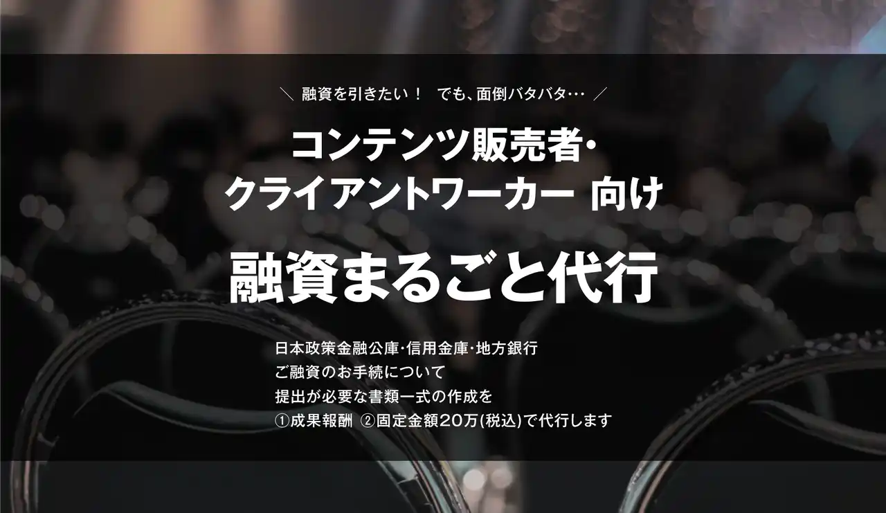多くのWeb事業者が「借金=怖い」という先入観から自己資金のみで戦い、機会損失を生んでいる現状があります。このサービスは、最短5日で申請準備を完了させる迅速なサポートを提供し、コンテンツ販売・SNS運用・動画編集・Webデザイン等に従事する個人事業主や法人の「精神的な余裕を持ち、攻めの経営に転じたい」という特定のニーズに応えます。 |